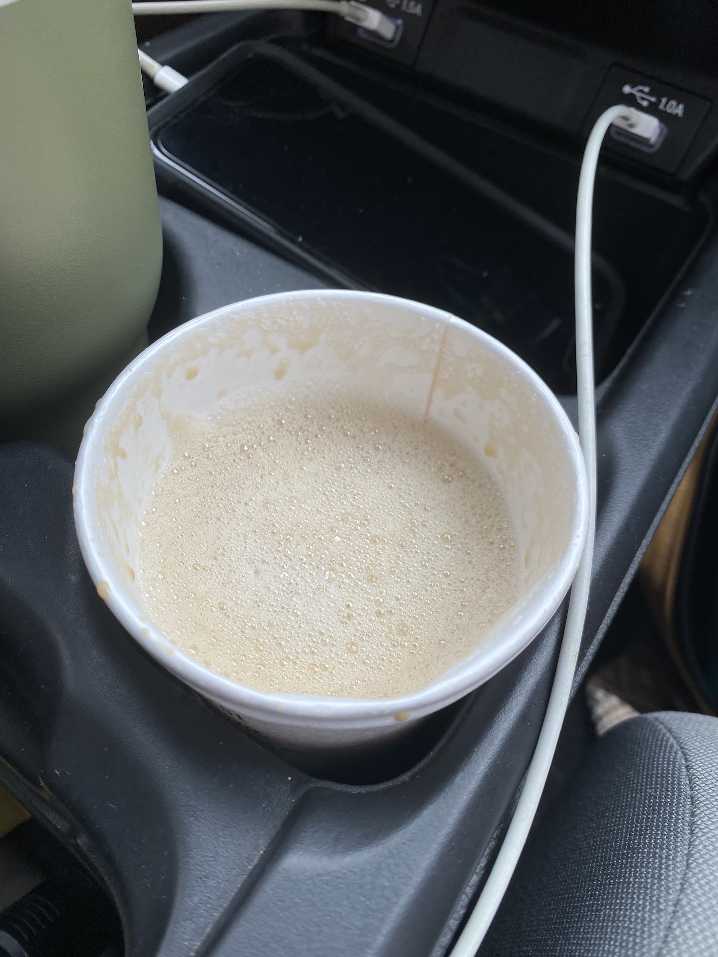(For context, I'm in a boot and on crutches, that's the whole reason we originally did drive thru because I had just gotten done at school and my foot already hurt from walking around the high school so much. Whip cream makes me feel queasy so I usually don't get it, I already had an upset stomach so I ordered it without whip cream, no major changes to the drink...