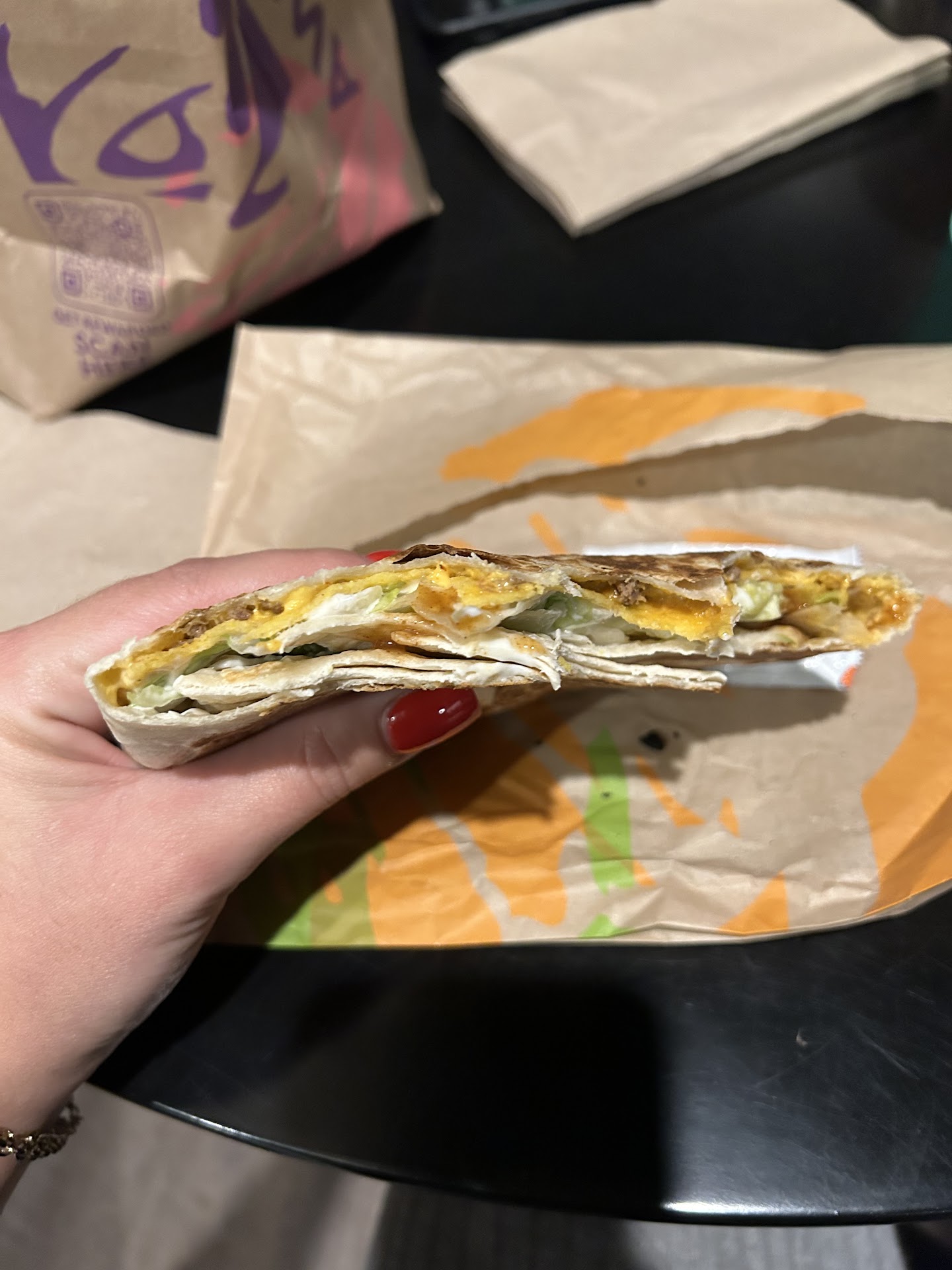 Read moreWe just went through the drive thru and for spending almost $30 (for what little food we ordered) it was disappointing. One of our 3$ steak burritos was as flat as a cheese roll up. It had 3 pieces of steak, no red strips, no pico & barely anything else. It tasted like it had extra chipotle on it when it was suppose to be light. The 3$ cheesy melt steak burrito we ordered was almost just as bad. The crunchy tacos are a hit & miss. You may get good taco shells you may not. Anymore, it seems that we get either soggy or broken or both. Not sure what the problem was today. Next, you should probably train your employees to answer the phone like they may care just a little. When I called all she said was Taco Bell & sounded like her life was depressing. When I said thank you before we hung up all I got was yep. Not good customer service & I'm assuming she's some kind of manager or crew leader. I should've taken pics but I didn't. We were all hungry but I will definitely do so next time! The girl taking our order & at the window...