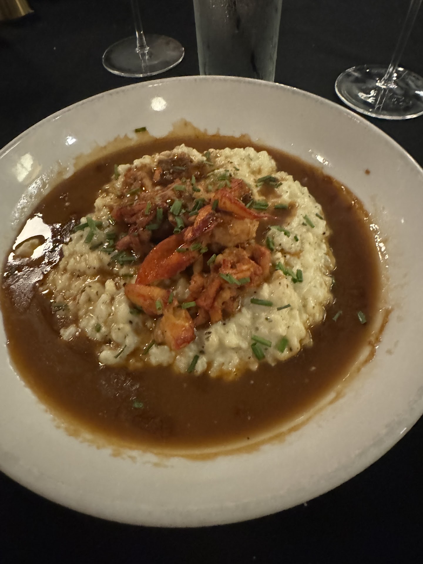 OK where to start. I’ve seen a lot of of the other reviews of this restaurant all saying it’s a five star fine dining place—if you’re used to eating at Applebee’s then yes it is an upgrade. But black walls and black tablecloths do not make a fine dining restaurant. The flatware was okay, but not something you’d find in a fine dining establishment. The service was slow and the restaurant was incredibly loud. The tables are long, rectangular tables coming away from the wall and the chairs were something you’d see in an upper scale diner. Everything was nice but fine dining-No. The tables are all six tops yet they charge you 20% gratuity on any party 6 or more. They also charge you automatically a service fee of 3% because they’re planning on you using a credit card (that they thankfully removed when paying cash). The restaurant is very narrow almost like it used to be the space between two buildings. This probably accounts for the loud noise factor and the use of long rectangular 6 top tables. The space was really not designed for a restaurant. Now let’s talk about the food. I give them credit for trying to create interesting and different menu options. The salads are very good and some of the entrées were absolutely delicious. The lobster risotto was very good although for $38 appears that you get the meat from inside one lobster claw and the rest was something diced up. I really couldn’t tell that I was eating lobster, but the flavors were very good, and I would still recommend. My wife had the salmon, which was cooked well, but the pesto was overpowering, and too much pickled onions piled on top. She said the proportions weren’t t quite right and wouldn’t probably order it again. The mushroom linguine was another story. The chicken was overcooked and dry, and the artichoke was undercooked, and again, the pesto was overpowering and just not right. My daughter couldn’t even eat it. Would have sent it back, but since our waitress didn’t come by towards the end of the meal, there’s no point in ordering something else. I told the waitress it was not good and she couldn’t eat it. However, they did not take it off the bill so apparently at this restaurant, if they serve it, you are paying for it. Realistically, it may of just been a new server who didn’t know that she should have removed the meal from the bill. I didn’t make a big deal about it just because we were celebrating a graduation. Just an fyi, she served my 17yo daughter a glass of wine that was intended for another adult at the table. She may want to card people that don’t look old enough….