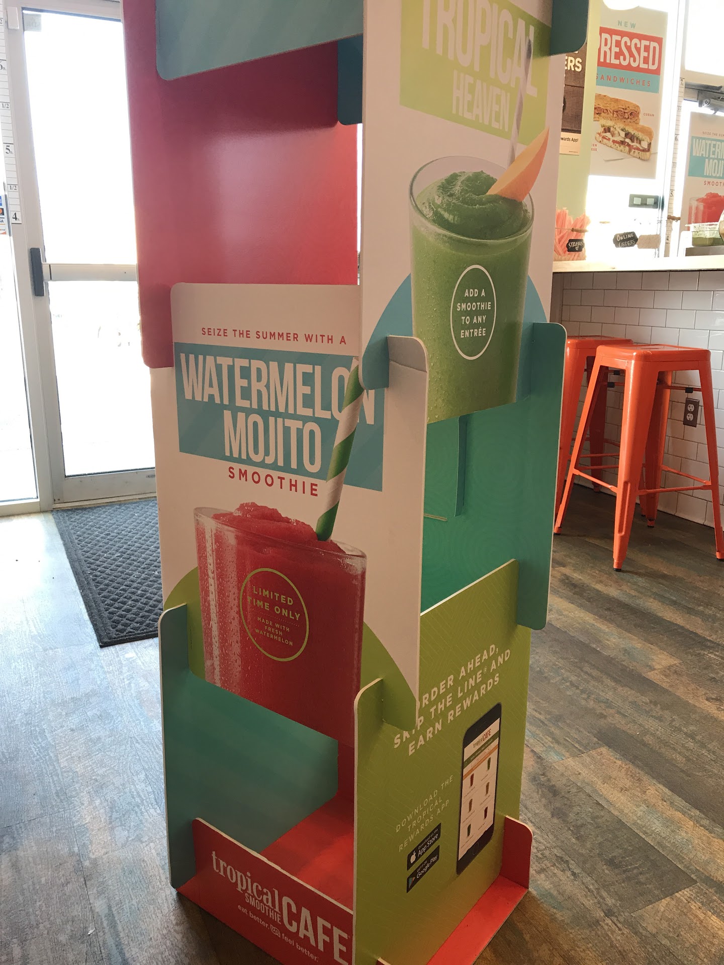 When my smoothies were done, they each handed me one at a time (3) total. I maneuvered them to my car. Then the rest of my order came and it was wrong so I had to wait longer in the unfriendly environment.