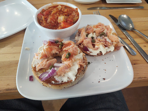 My favorite meal is the half Tomato Mozzarella Salad with smoked salmon on a bed of lettuce. The mozzarella is fresh and it's served with pesto and reduced balsamic vinegar dressings. Where do they get their balsamic vinegar? It's mouthwatering!