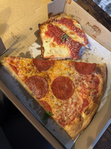I walked in on a random day, not expecting much, just chasing that little taste of home. Right away, the vibe was chill, lowkey—exactly the kind of spot you’d want to stumble into. The hostess greeted me with a smile, and I ordered a pepperoni slice and a grandma slice (because finding a solid grandma slice outside NY? Practically impossible).