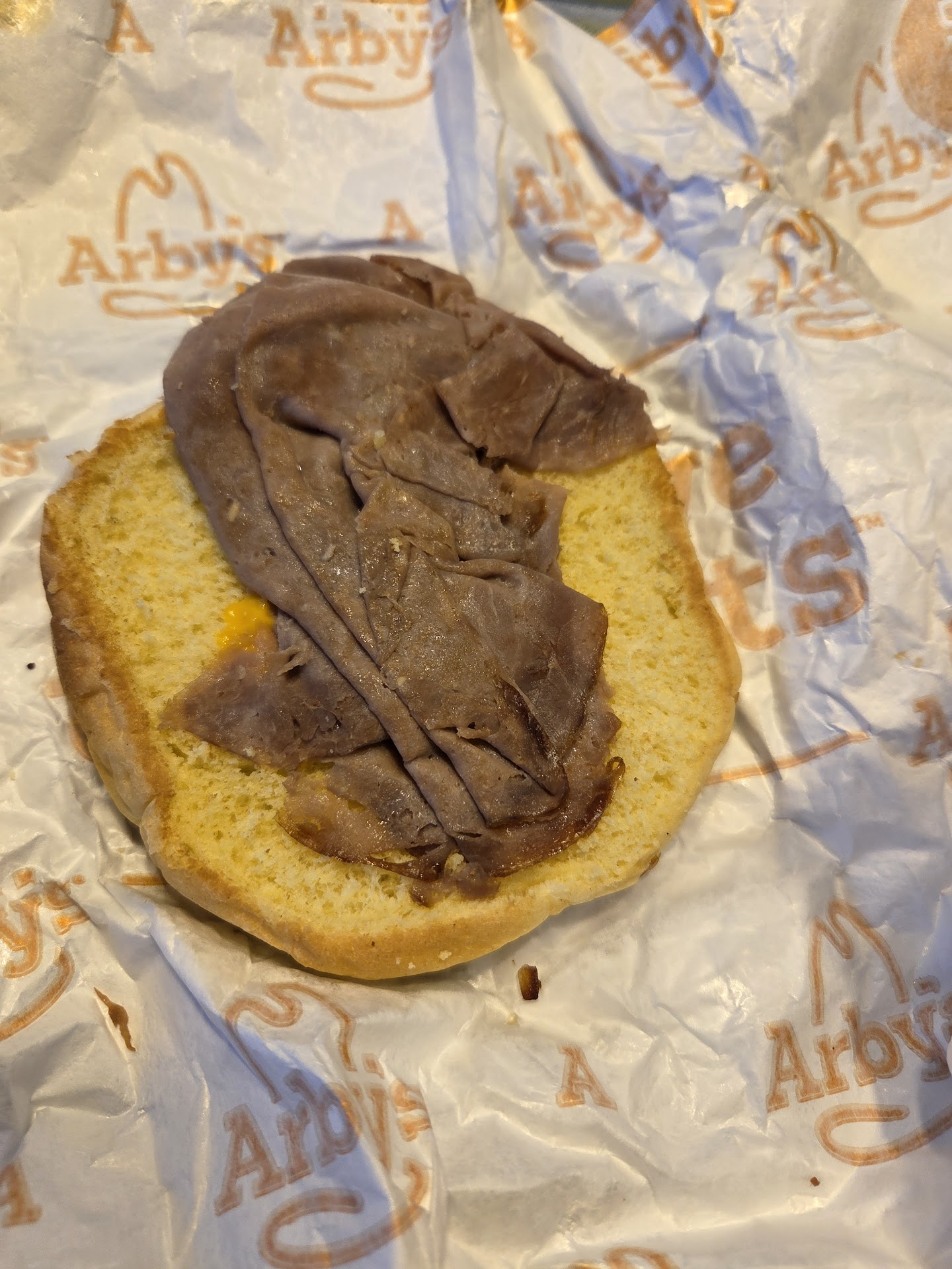 This Arby's location is usually my family's go to when we are too busy to cook at home. The food, service and atmosphere are usual ok even there are younger guys working there. I normally go in. Today I went through the drive thru. My food was a complete mess. Only food that was decent was the happy meal. The guy sounded so disappointed that I even decided to come and order food. Each item I asked for one by one, he kept saying anything else in an uninviting tone. Hoping I didn't order more. I got to the window he looked very upset. He took my card. I spent $44. All of the sandwiches look like someone threw them in a wrapper without assembling them properly. I open one and this is what they thought of my order. Take a look....