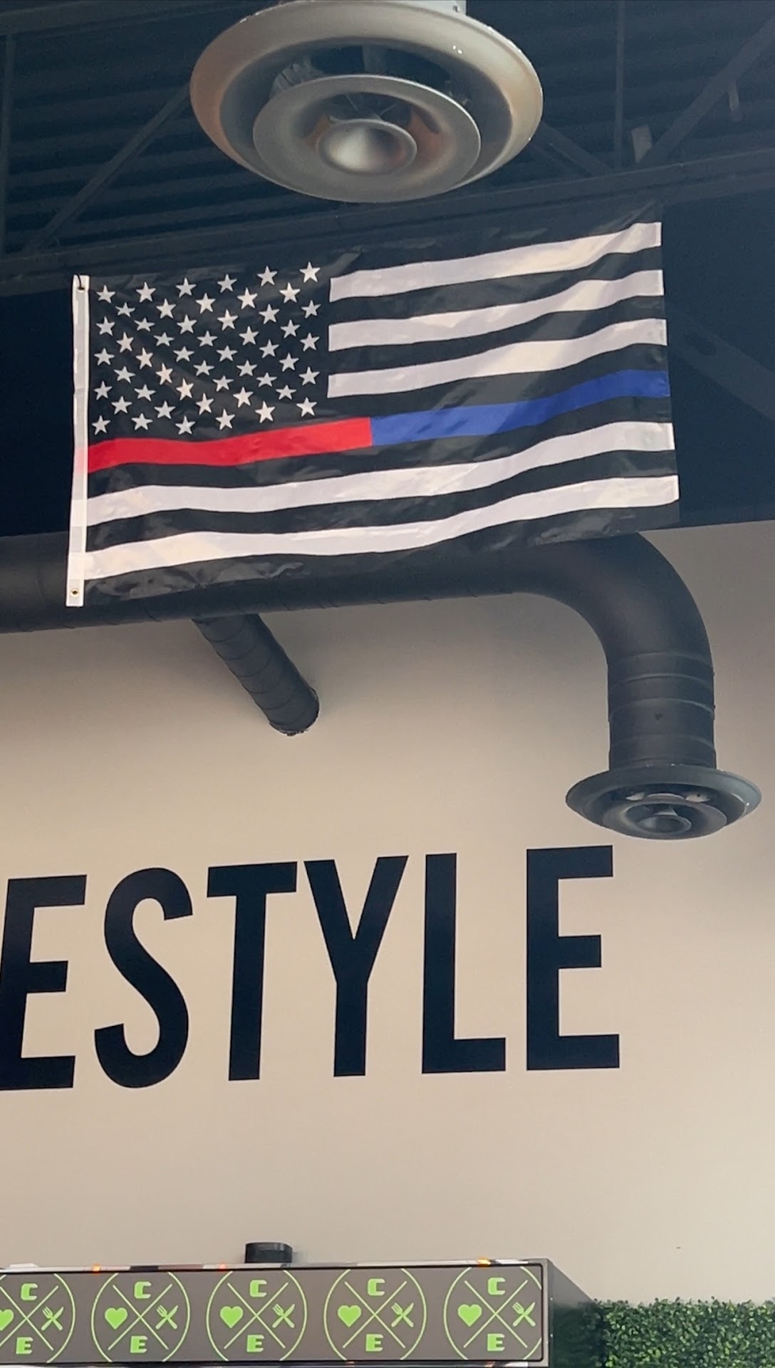 Read moreFood was great but my family and I were thrown off by the huge Blue Lives Matter Flag in the Fishers location restaurant. For those who may not know:The phrase “Blue Lives Matter” emerged as a response to the Black Lives Matter movement. The flag is dismissive to the issues raised by the Black Lives Matter movement, which primarily addresses systemic racism and police brutality.