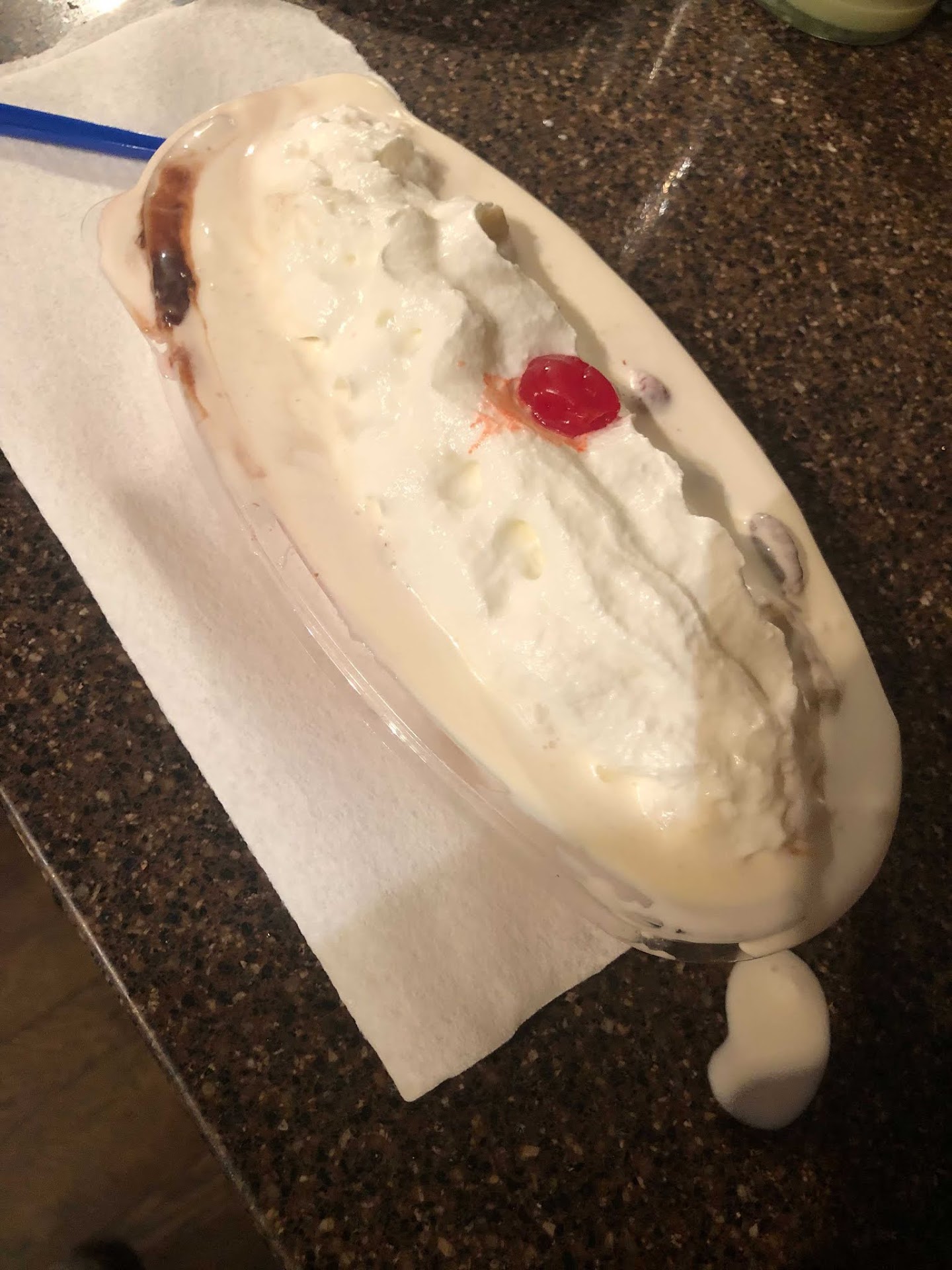 Read moreWanted to try a banana split since I never had one before, and this is what I received. Upon paying at the window, the cashier didn't give me a receipt, and I had to request a number as she asked me to pull up to one of the spots in the parking lot to wait for my food. She was busy laughing about something, I'm not sure. Most of the staff were laughing in the background at some unrelated issue, but seemed to not be serious about getting people's food out. Several people were waiting, more than usual. When one of the staff workers brought my food out he didn't say a word, and put the food in the car, not me reaching out for it, but basically placed it my lap, which may not seem to like a big issue, but it was weird, and felt intrusive. As he walked away, the person parked next to me yelled at him asking where his food was, and that he had been waiting for half hour. Five minutes later, I discovered that the banana split is leaking all over my wife's leg, and in the car. The lid was not on tight, and looks like they just poured cream into it, not putting any effort into preparing it. Culver's, at least this location, used to be a common spot to visit, as the service and food were good, but lately, it's been declining. Culver's if you all decide to reach out to me, don't be sorry, just...