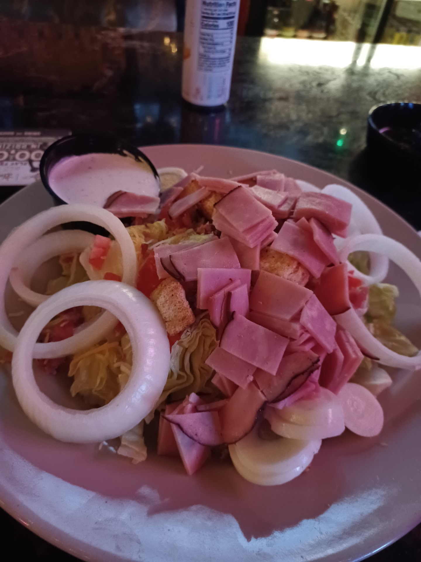 Read moreMy husband and I stopped by there to try something new. Erin greated us nicely and took our drink order. The food was fantastic! Husband had nachos, I had farmer salad and a cup of chili. It was heaping and delicious. Had to take the salad to go, couldn't eat it all. Food took a little while to come out, longer than you would expect nachos, a salad, and chili. No mention about the length of time, fine, the food was great. Asked for box, a young man came out with tops for my dressing. I jokingly said he knew exactly what I needed, and he said he was told I needed lids. I made a couple other comments, no response. Erin brought the box and I got my salad ready to go. My husband told her how he needed the checks and it was perfect. Took at least 5 or 6 times passing by it to finally check us out. Maybe we had both had it, since we were out of beer and tired. Karaoke was good. If you want to mainly cater to locals, I believe you have it dialed in. Otherwise, you might be missing an...