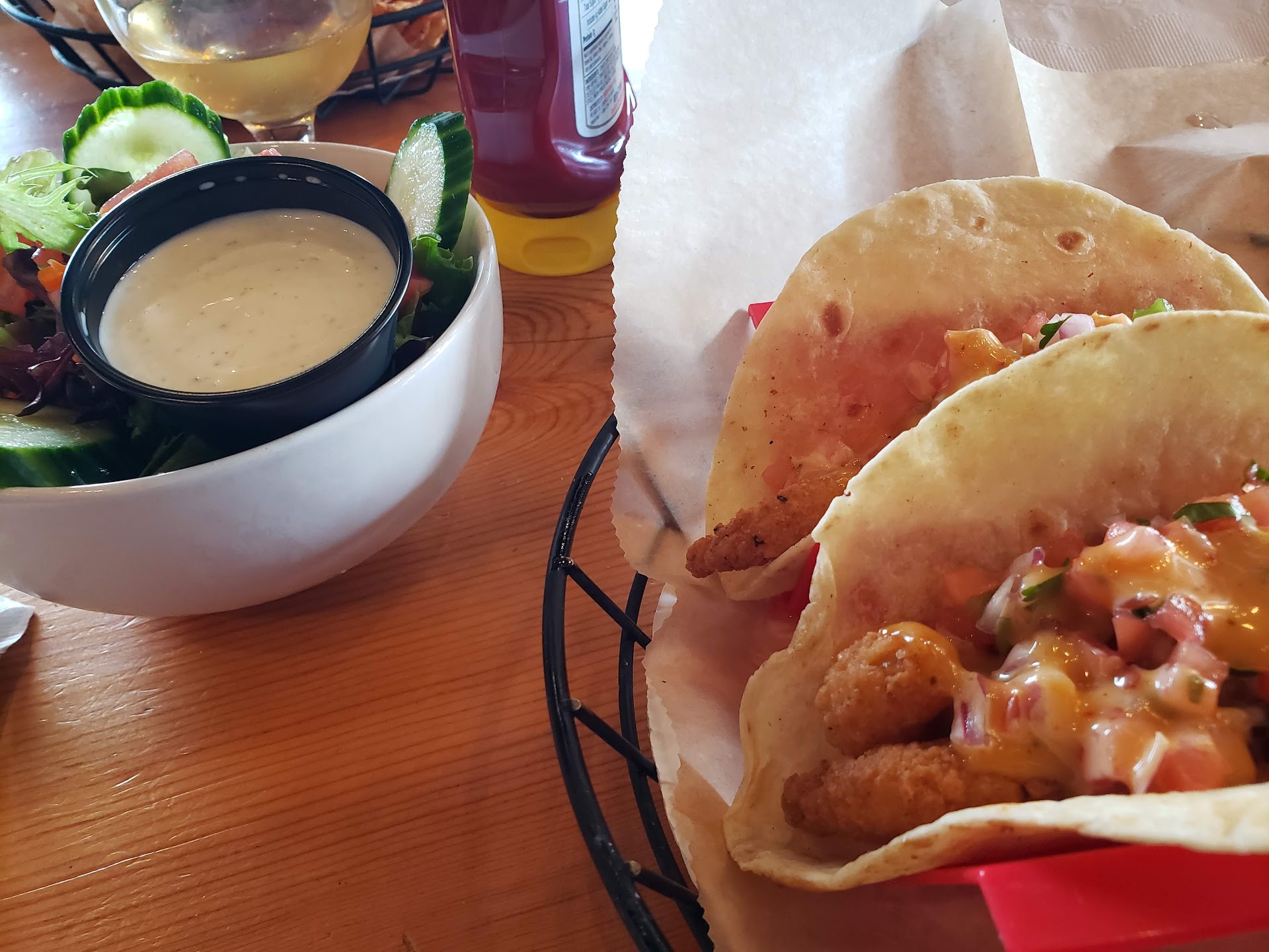 Read moreBeer was good. Food took an hour and fifteen minutes, which was weird because the resturaunt was about half full. Tater tots in the tachos were massively under done. The meat on the tachos was pizza sausage and gristled beef. The menu stated sauted chicken and beef. My fish and chips came out very hot and portion was fair for 10 dollars. They didnt have tarter sauce as stated in the menu and the breading was not seasoned and was very bland. My fries came out hot but were definitely raw. Over all it seemed like they ran out of food, went to Kroger and picked up some groceries, then came back and served us what they could find. All in the hour and fifteen minutes we waited. Just an odd experiance with no explanation for the amount of time it took to get our food. In the time we waited we got one apology from the waitress, whom we dont blame. I only gave two stars as I would give one but the two beers we had we very good and if your looking for a beer, this place...