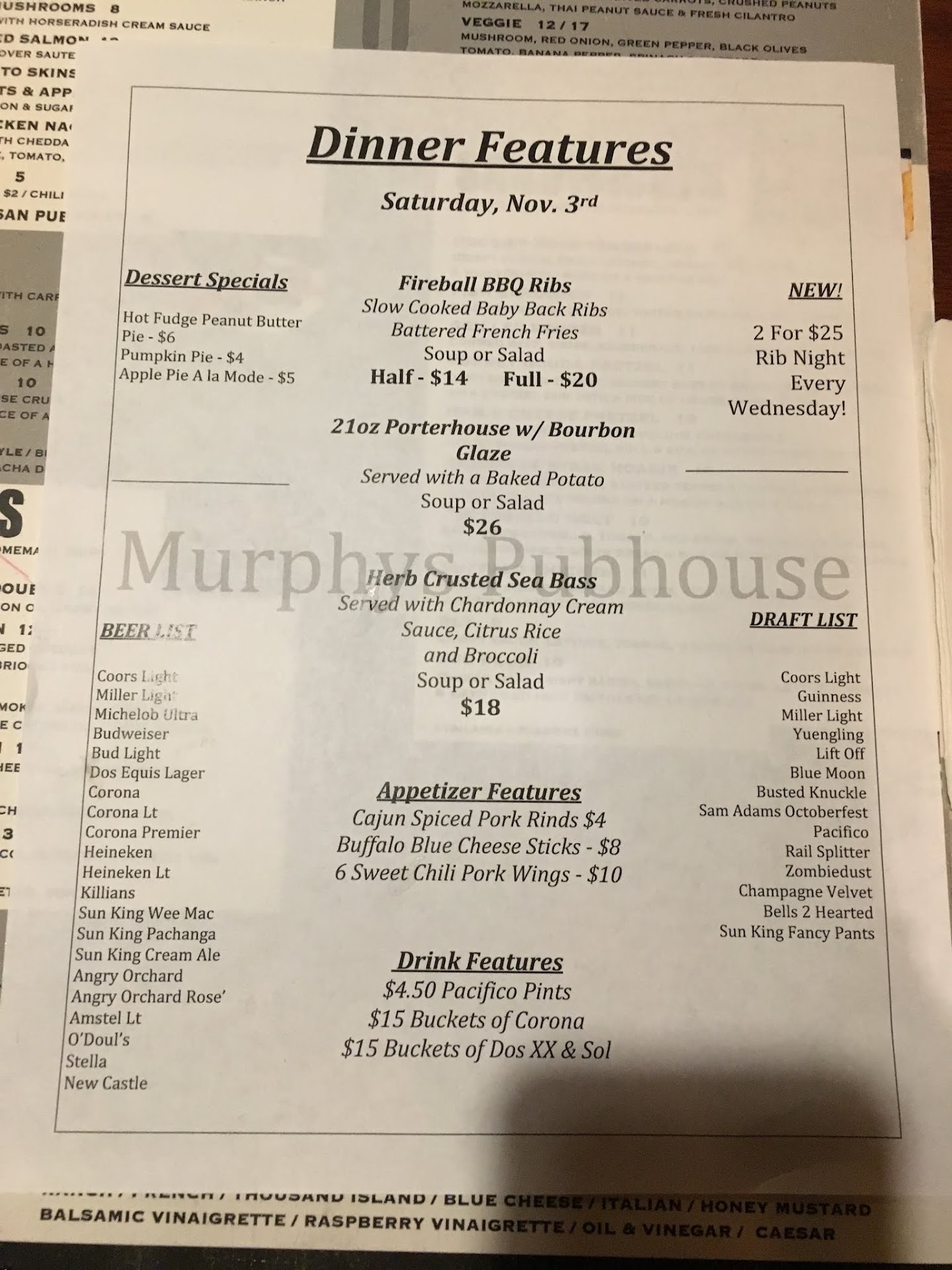 Read moreI dont know who will/needs to hear this but last night I recieved probably the best customer service I have had in a very long time. I come from a restaurant background msyelf so I have a level of understanding of the business but I also have high expectations. My sister and I arrived and it was very busy - nearly packed. We wanted to sit outside and were told the bartenders would take care of us. They did not. The male bartender that greeted us was very rude and unfriendly - being busy is no excuse to be rude to a customer. That excuse doesnt fly with me; I bartended for years. I ordered a grey goose and soda with a splash of cranberry. It came with no cranberry. No big deal. I went to the bar to ask for some and was ignored while they completed tasks like clearing dirty glassware. I finally got my cran and was thankful and pleasant and went back outside. All in all we waited probably 15-20 minutes with noone coming to take our order. But we love Murphys so we decided to move inside to a table; hoping for better service. Amy was our server and she was absolutely amazing; she was kind and attentive! The manager (also Amy) stopped by to check on us and was five-stars above and beyond to make sure we were taken care of. Even the host Devin or Dylan (sorry) - went above and beyond to take care of us. In my 45 years I have NEVER experienced a turn around like this and truly left feeling all the good vibes and like a valued customer. So from the bottom of my heart in a time when good customer service is rare - thank you so much! It really made a huge impact on my and my sisters day and...
