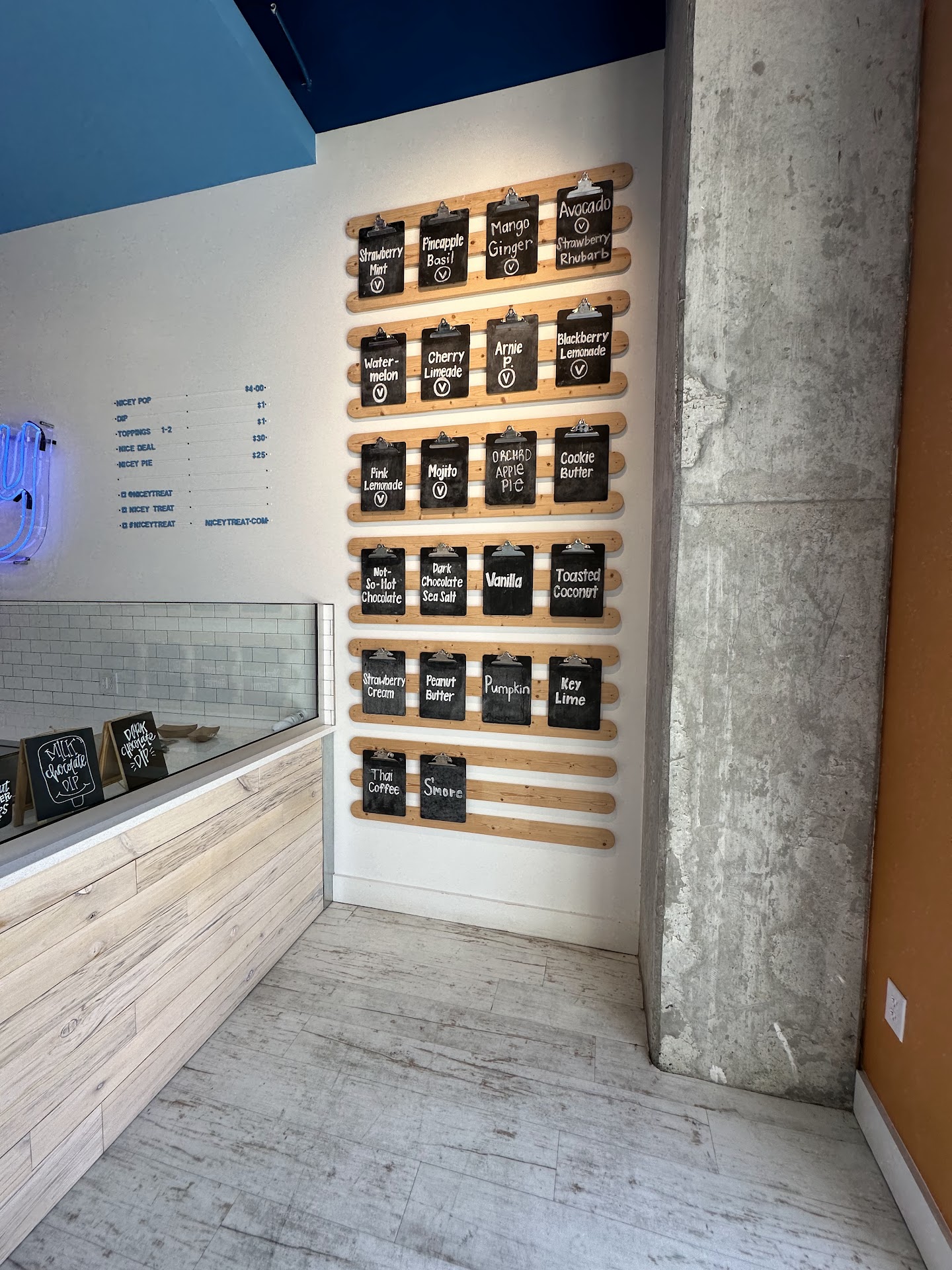 Read moreNicey is a modern, trendy ice cream shop that specializes in popsicles, offering a unique twist on traditional ice cream. The flavors are creative and full of unexpected combinations, setting it apart from typical ice cream spots. I especially love the option to dip popsicles in chocolate, with plenty of topping choices to customize your treat.