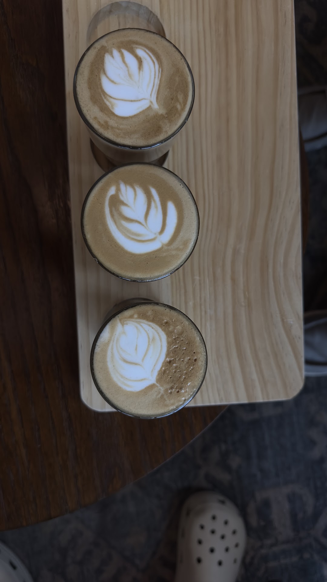 Despite this, among the many items I have tried, I believe the Bumble(cinnamon, honey, and cardamom) is my favorite flavored drink they serve. I recommend it as a cortado because it comes in a quaint clear glass mug with beautiful latte art on top. Pictured is their cortado flight, which is three flavored cortados of your choice.