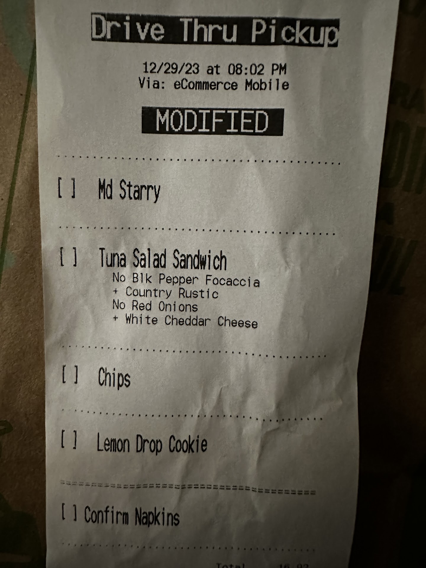 Our last rapid pickup order wasn't on the designated shelf, so my wife sat there for ten minutes, waiting. No one asked her if she needed help and the order never appeared, so she got up to walk back toward the prep area to inquire...and there set our order.