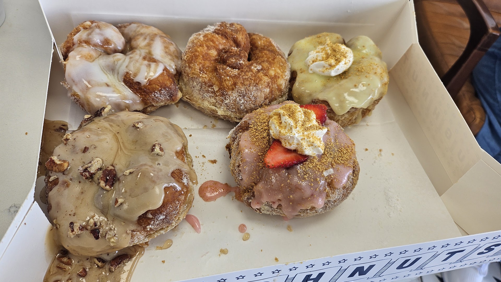 I saw this pop up on my feed about a place I needed to try. We decided to go...and I don't know why I didn't go sooner. The texture is different from most donuts. They are more croissant like a Cronut.. IYKYK... Now, they offer vegan options, which I did not get this time, but I will update this review.