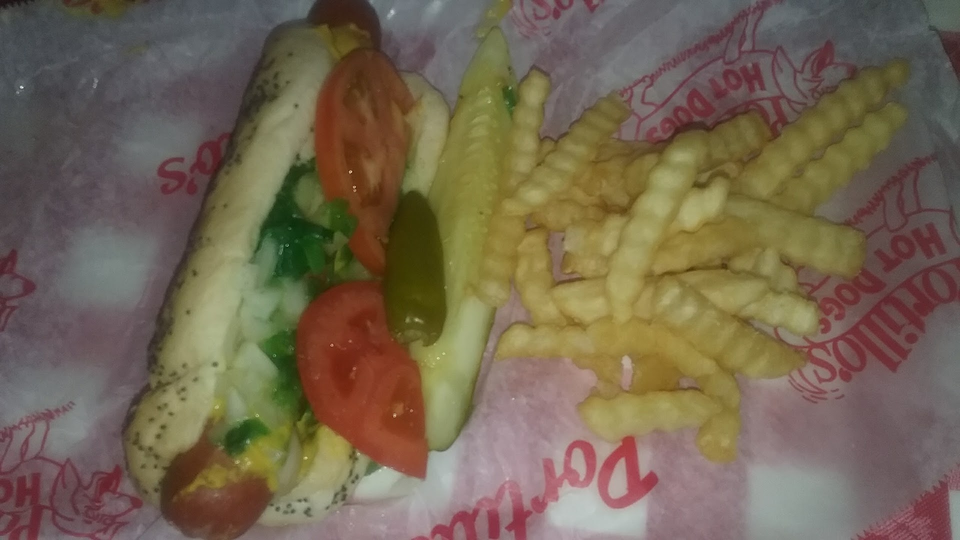 Great food with fair prices. Their hot dogs are some of the best! I have not tried their burgers yet, but I haven't heard complaints from anyone I know that has tried them. They definitely put plenty of toppings on the hot dogs, and the customer service was very good. There was a VERY long wait so if you are going to be in a hurry I suggest ordering for pick up or go through the drive thru. We waited a good 20-30 minutes to get our food and you have to stand in a group waiting to be called. There was a lot of stress on the employees with the large amount of people waiting on food but I thought they all handled it well. They kept patience and friendliness as well as a great work ethic. The area where they prepare food is visibleto customers and it all appeared clean. Workers had gloves and proper items on as needed when working with food from what I seen.