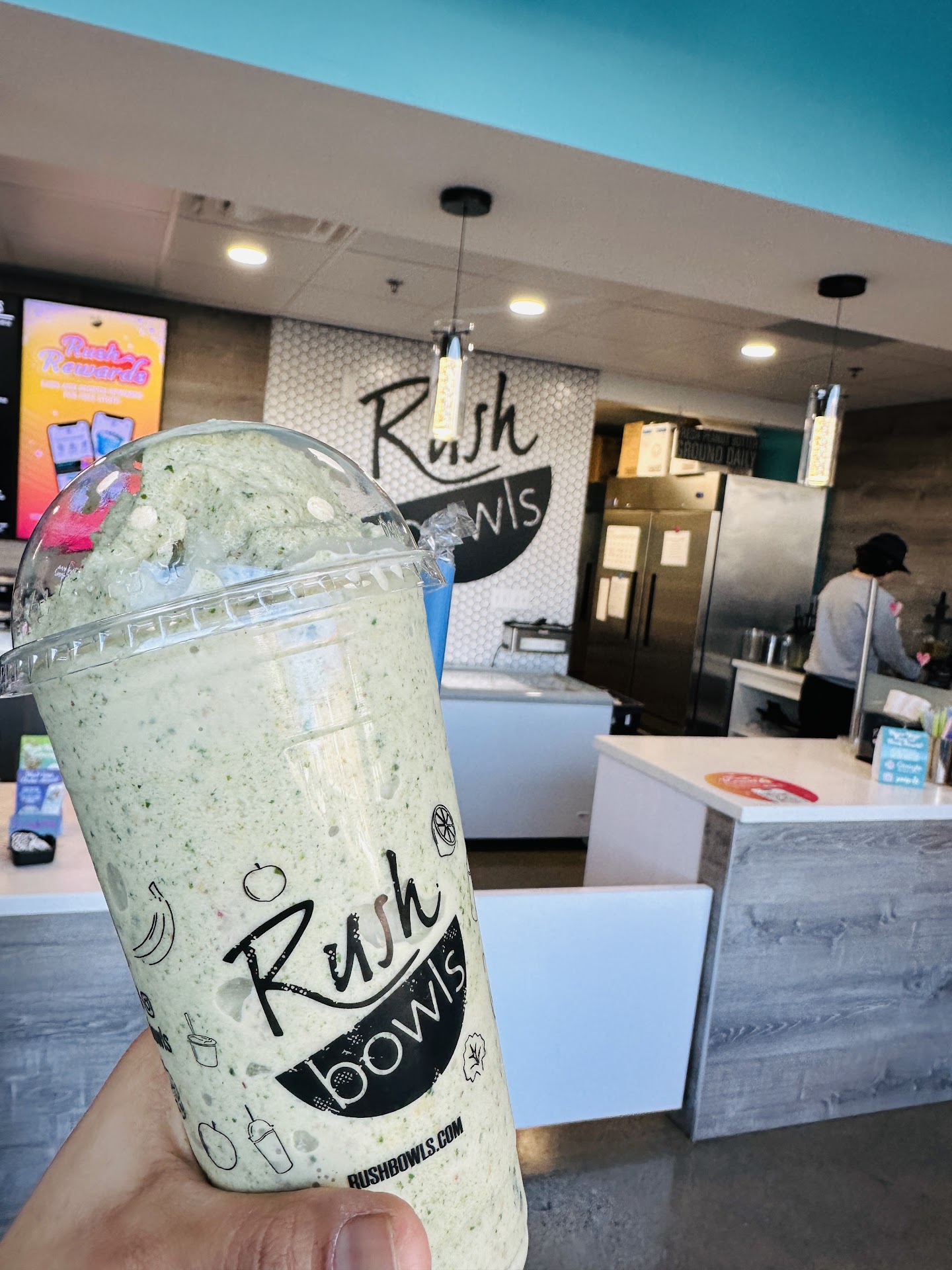 Read moreI love coming here! They have a great menu selection for smoothies and smothie bowls. They also have great Rush Bites which are freshly in house ground peanut butter bites with either cocunut, granola, or banana bread. Definitely a great healthy protein rich snack. They even offer a meal for dogs. Called a Bow Wow Bowl made with Banana, Pumpkin, Peanut Butter, Blueberries, and a Milkbone treat. My favorite are their smoothie bowls which I normally eat before or after a workout as they are great for energy as well as protein if you add peanut butter or vanilla whey, and use milk or soy for the mix. My favorite is the PB and J Bowl. It is out of this world. I use coconut milk and it is made with this jam sauce and a bit of honey with peanut butter and granola. I highly recommend it. Any of their selections you can't go wrong with. It is all natural and wholesome. Great for following a healthy diet and lifestyle. They also offer Buy one get one free on Mondays and Wendesdays. Great for taking kids and the whole family. My daughter loves the smoothies and smoothie bowls here. Healthy alternative to all the unhealthy snacks for kids out there. The staff here is friendly and the place is always clean. Definitely check...