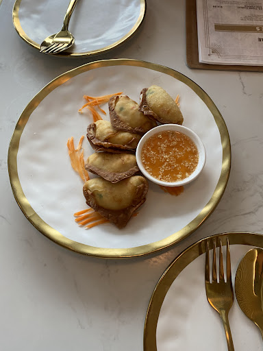 The crab Rangoon were so yummy and my friendās chicken satay was awesome especially with the cucumber and peanut sauces.