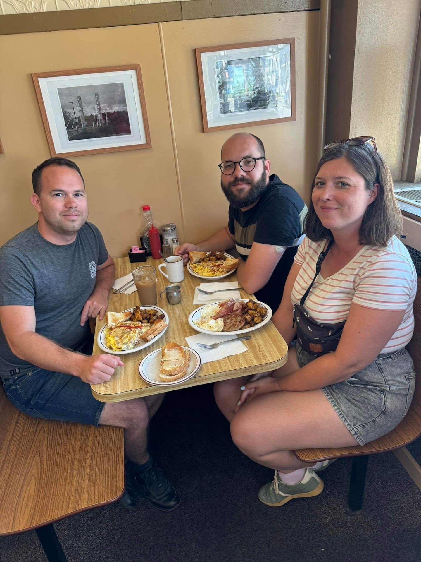 Read moreLoved it. Small hometown diner, with pictures covering almost every wall space they can. We went in at noon, grabbed the only open table, and realized the owner was by himself. He was taking tables, had a couple guys at the breakfast counter, and he was cooking. We got the full stack of chocolate chip pancakes, and turkey club. They were awesome. Pancakes as bug as the plate and the club was on point...yummy!! We were out of there in less than 40 minutes, even with talking a bit after we finished eating. I...
