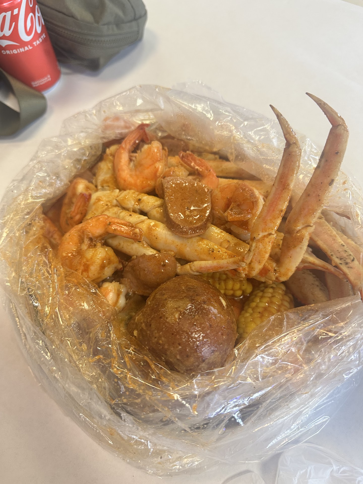 The past few months me and my bestie have experienced the pleasure of indulging in a seafood boil that was NOTHING short of heavenly. As soon as we walked into the crazy crab we could smell the inviting aroma of old bay seasonings and cajun seasonings, which just set the stage for an unforgettable culinary adventure. The seafood selection was impressive, featuring mussels to shrimp to crawfish, snow-crab, king crab the list goes on. We indulged ourselves in the seafood boil combo containing snow-crab, potato, corn, sausage, and shrimp. Each piece of seafood was bursting with flavor. The balance of spices was spot on—enhancing, rather than overpowering the food which made trying a seafood boil for the first time comforting. The presentation was a feast for the eyes as well. The boil was served family-style, heaped in a vibrant mound on a table covered in butcher paper. The restaurant itself could use some work on the interior however when I’m balls deep in that seafood boilussy it’s hard to notice....