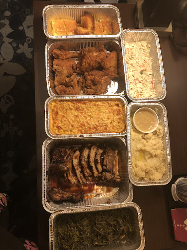 We ordered fried chicken, baked chicken, smoked pulled pork, mac and cheese, mashed potatoes and gravy, cornbread, collard greens, and banana pudding. All of it made from scratch and mouth-wateringly good.
