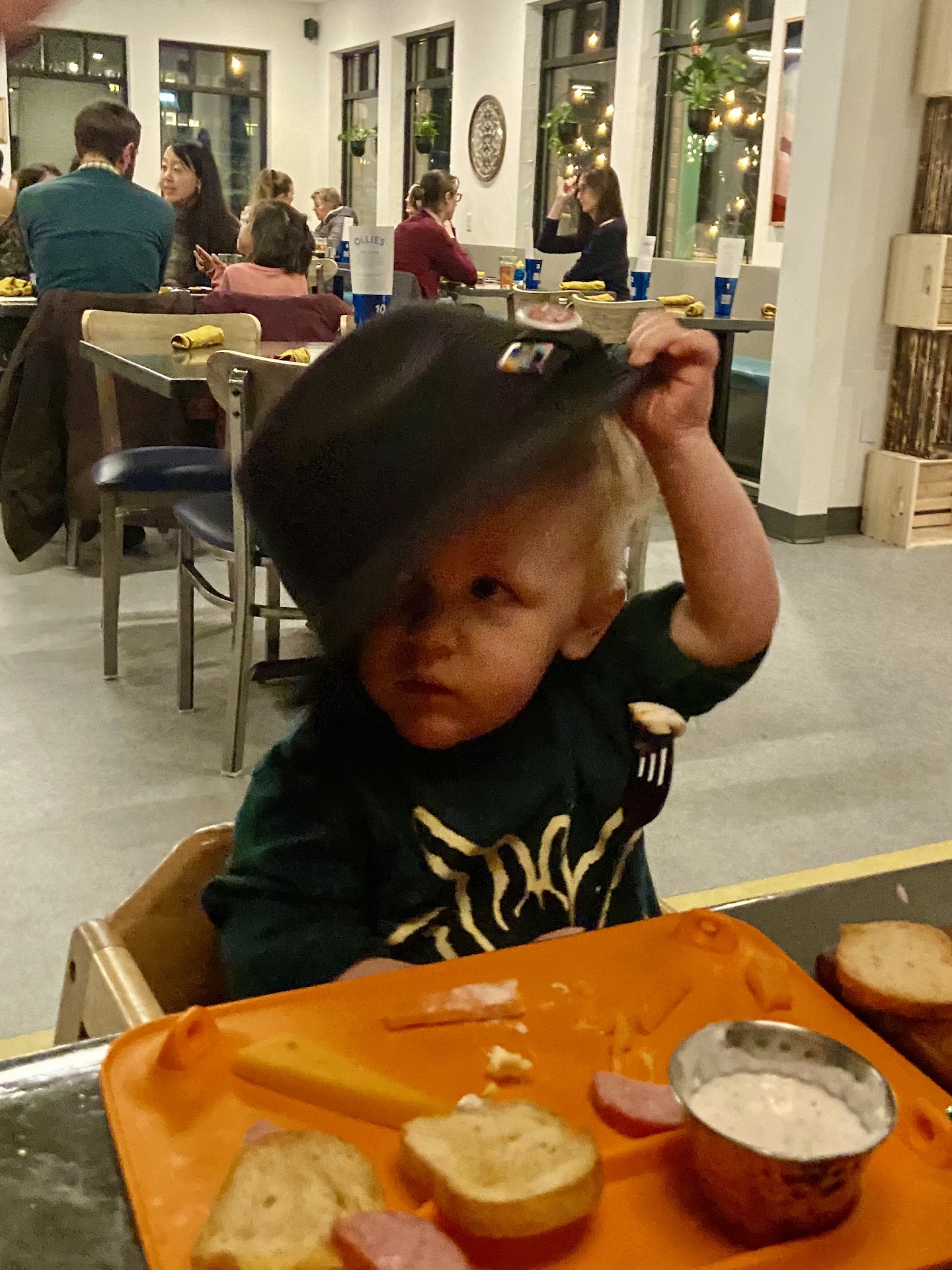 Read moreWhat can you say about a restaurant that not only serves good food, AND the Chef/Owner does such amazing things for the community? You can say—GO EAT THERE. Seriously, if you haven’t tried this restaurant yet what are you doing with your life? Our party consisted of 5 adults and one 2 year old with a very sophisticated palate. The ordering system was pretty cool. You scan a QR code and order from your phone! But our waitress, Danay, was available whenever we needed anything else, or had questions. She was very cool! We started with apps for the table- truffle fries, and smoked tofu wings and a Giant hot pretzel. YUM. All were delicious, server with dipping sauces and were piping hot! The toddler, who demanded food immediately, ordered the “Supper Club Platter” complete with deviled eggs, summer sausage, aged cheddar, carrots and celery with a side of whole grain mustard. However this little foodie demanded “ziki”. That’s tzatziki for all who don’t speak 2. Our waitress quickly brought it over and the kid ate the entire charcuterie board! The rest of us, less demanding humans opted for the Mulligatawny soup in a giant bread bowl, the Greek Out pizza, the Surf and Turf Smash Burger, the Forager Smash Burger (on a requested Gluten Free bun) and a Caprese Mac and Cheese. My fam loved everything. The Surf and Turf burger has shrimp scampi on it and I thought that was a weird combo, but my SIL said “it worked”. The forager had tons of shrooms! The pizza was ALL Greece, and no grease, with its juicy gyro meat and more of the fabulous “ziki”. My daughter said the Mac and Cheese was “very good”. My Mulligatawny soup was extremely delicious with layers of flavor!!! If you’re lucky, the Chef will come to your table to say hi, and talk to your 2 year old about local politics, and let him wear his hat! All in All, this was a very good experience from the food, to the staff, to the amazing decor with a nod of support to the LGBTQ community! Not overdone with bright rainbows—but more of a muted, sophisticated style! My only complaint is small- we sat close to the door, and even though its a double door with a vestibule, I did feel a small draft every so often. But, I’m an old Jewish lady…so, as we say, “Put on a little sweater”! Next time, I won’t...