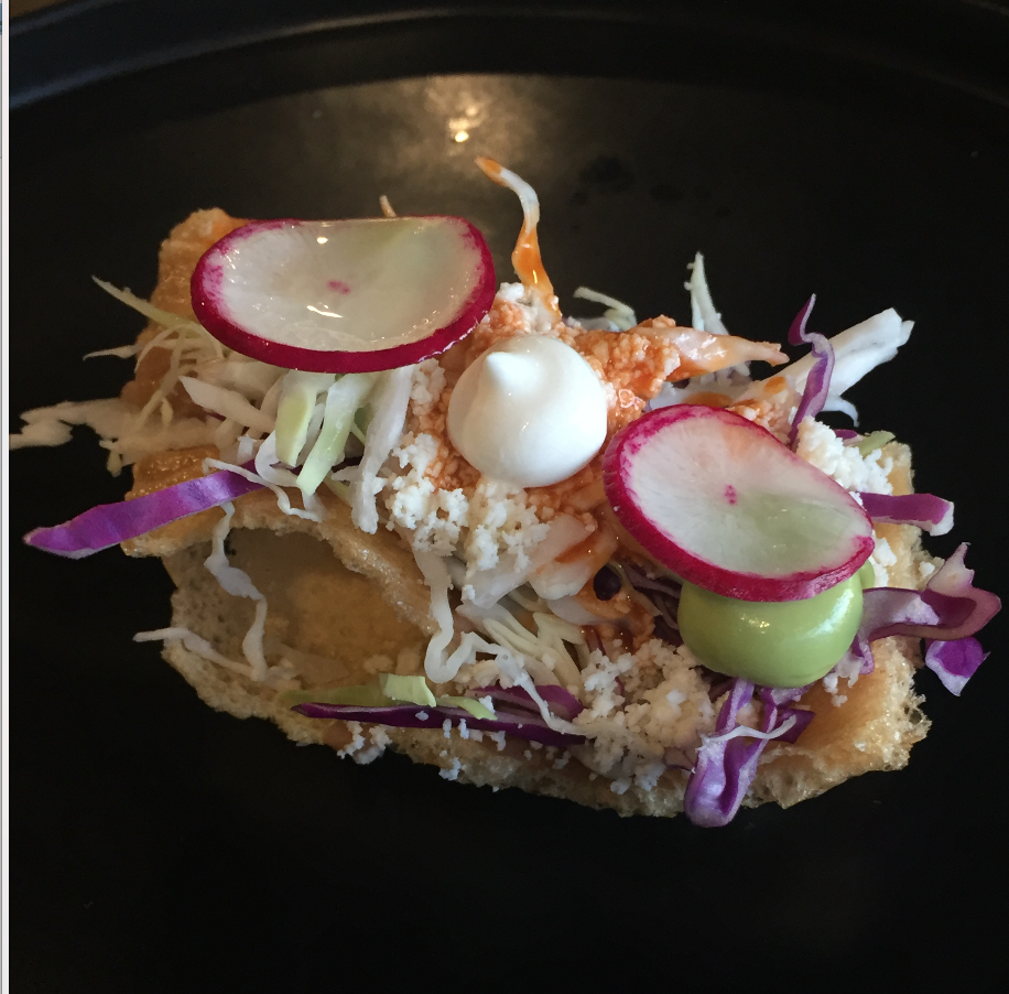 This was 3 discs about 4 or 5 bites per disc. Flavors were fresh and good. Again, no veggies. It seemed to be served atop plantains, which I liked. But this could easily qualifies worlds...
