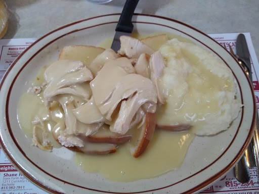 Passing through Rochelle. I read the reviews before my daughter and I went to the Sunrise Family Restaurant. We were hoping for a somewhat palatable, warm, decently priced meal. When we arrived it was crowded. That's always a good sign. We were seated within minutes, had our drink order taken and served quickly served by the owners son. He was very friendly and personable. The waitress came to take our order with a smile. I looked around to see other diners that seemed pleased and content. I ordered the Sunday special. Half roasted chicken, french onion soup, and mashed potatoes for $11.99. There was also corn and stuffing. I will confess, I am a foodie...and I was impressed because the food was homemade and flavorful. On top of that, I have lunch and dinner for tomorrow. I don't know how this family makes money serving such large portions. (I have a feeling they've done this with folks their whole lives...cooking too much.) The Dad and uncle I glanced at cooking behind the counter cook for people with love and have a real passion and calling to feed people and see them happy and satisfied. When I pass near Rochelle in the future...I'll be sure to return. My daughter was telling people at our hotel about our experience! I hope the family will carry on this legacy. It's a rare thing to get a real home-cooked meal anywhere these days. Thanks y'all for a...