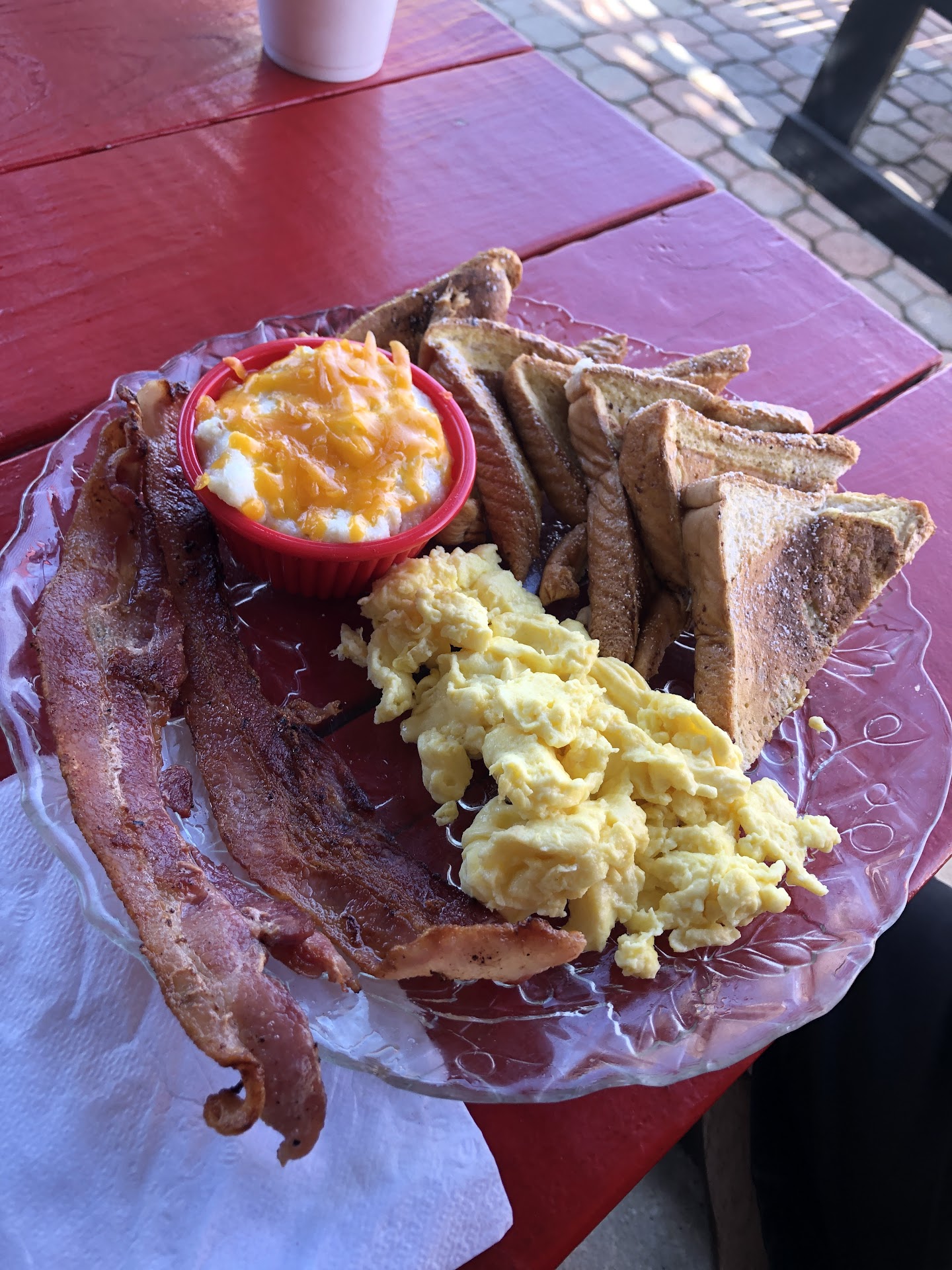 My bf got the Ocean City Special. He swapped the pancakes for french toast. He got two scrambled eggs with cheese, grits with cheese and bacon. He said it was tremendous.