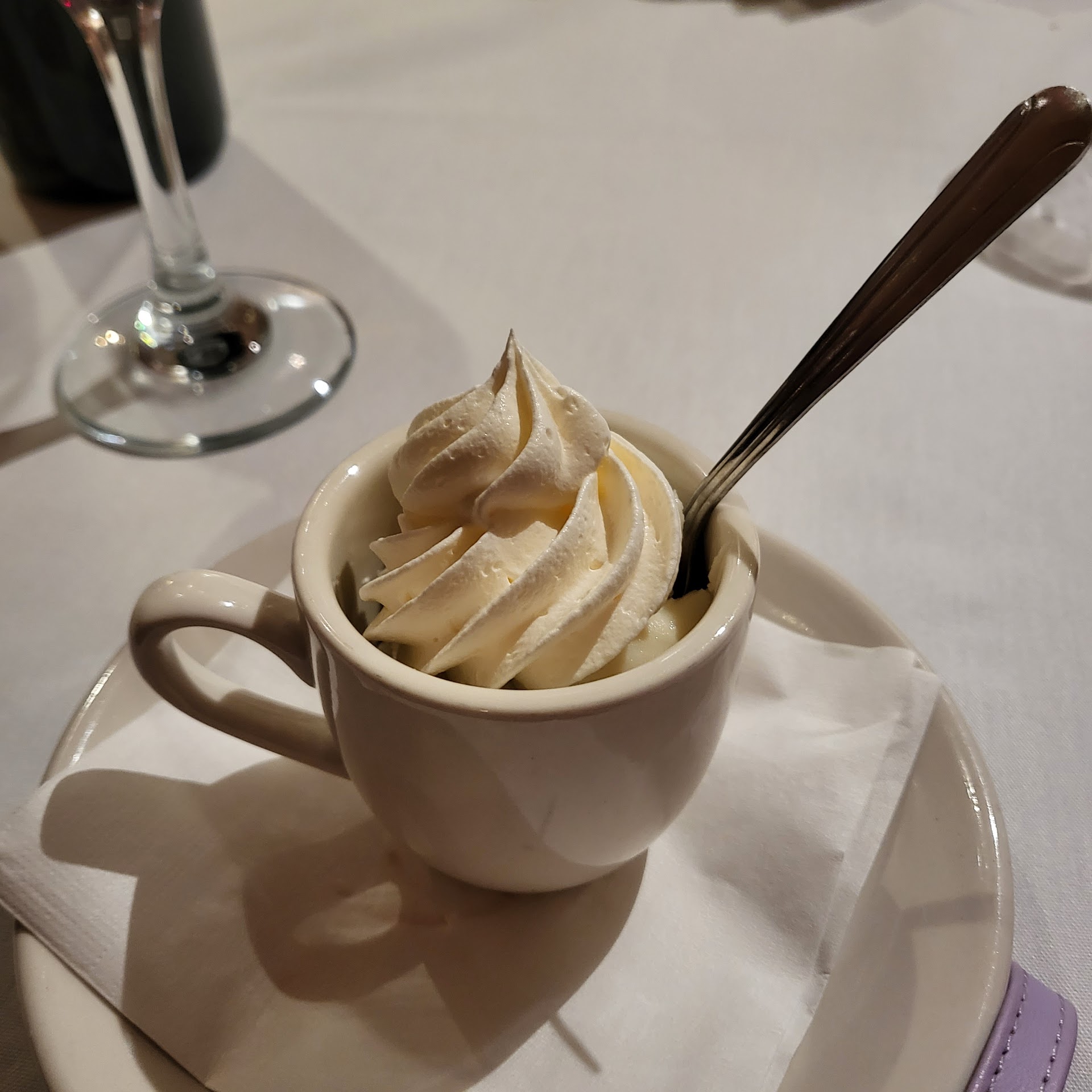 Our leftovers were neatly boxed and the server presented a fancy dessert tray with several fun choices including cheesecake from NYC, an edible teacup with chocolate mousse, and tiramisu. We ultimately chose the carrot and coconut cake(s). Both were just as good the next day- a must try.
