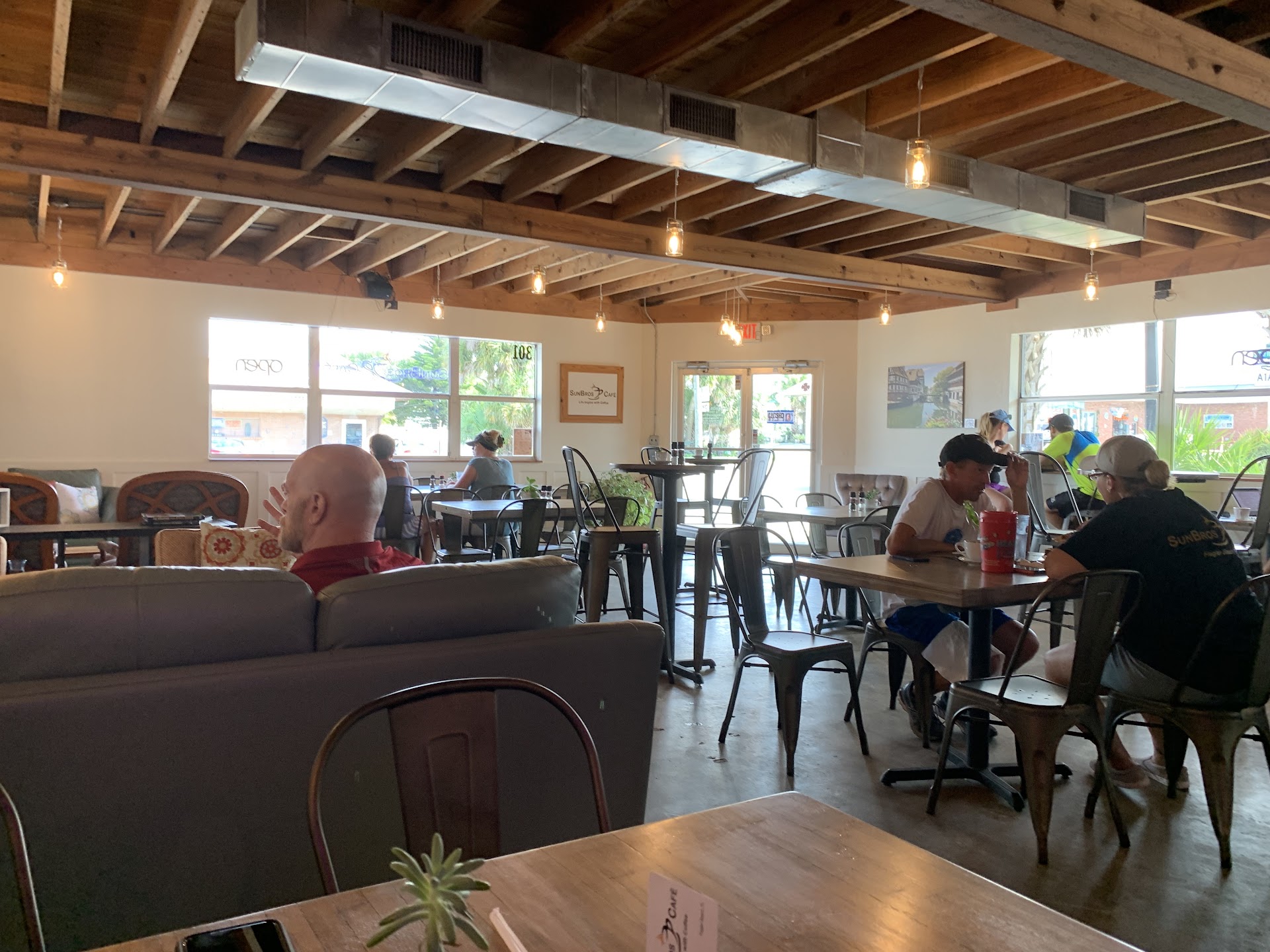Read moreI've been told about this place by several people since I moved here and just happened to stumble across it while my grandmother was in town. We went on a Sunday after church and it wasn't busy at all...in a good way. There was a man with a guitar playing some music which we all enjoyed. I got the club sandwich with a side salad and my grandmother got the club on a wrap with cucumber salad. We also shared a piece of the coffee cake which is one of the best 👌 I'm a chef and pastry chef and it's almost better than mine 😉 for refreshments we had the peach mango refresher and the blood orange refresher. Both we very tasty and I'd definitely order it all again. No complaints. I have a young daughter and they were welcoming to her as well. I'm excited to go back. It was really my favorite food I've had in Palm Coast. I have a hard time spending money on out to eat food because I'm always disappointed...this did not disappoint. The only downside is parking. But we parked across the road and walked...