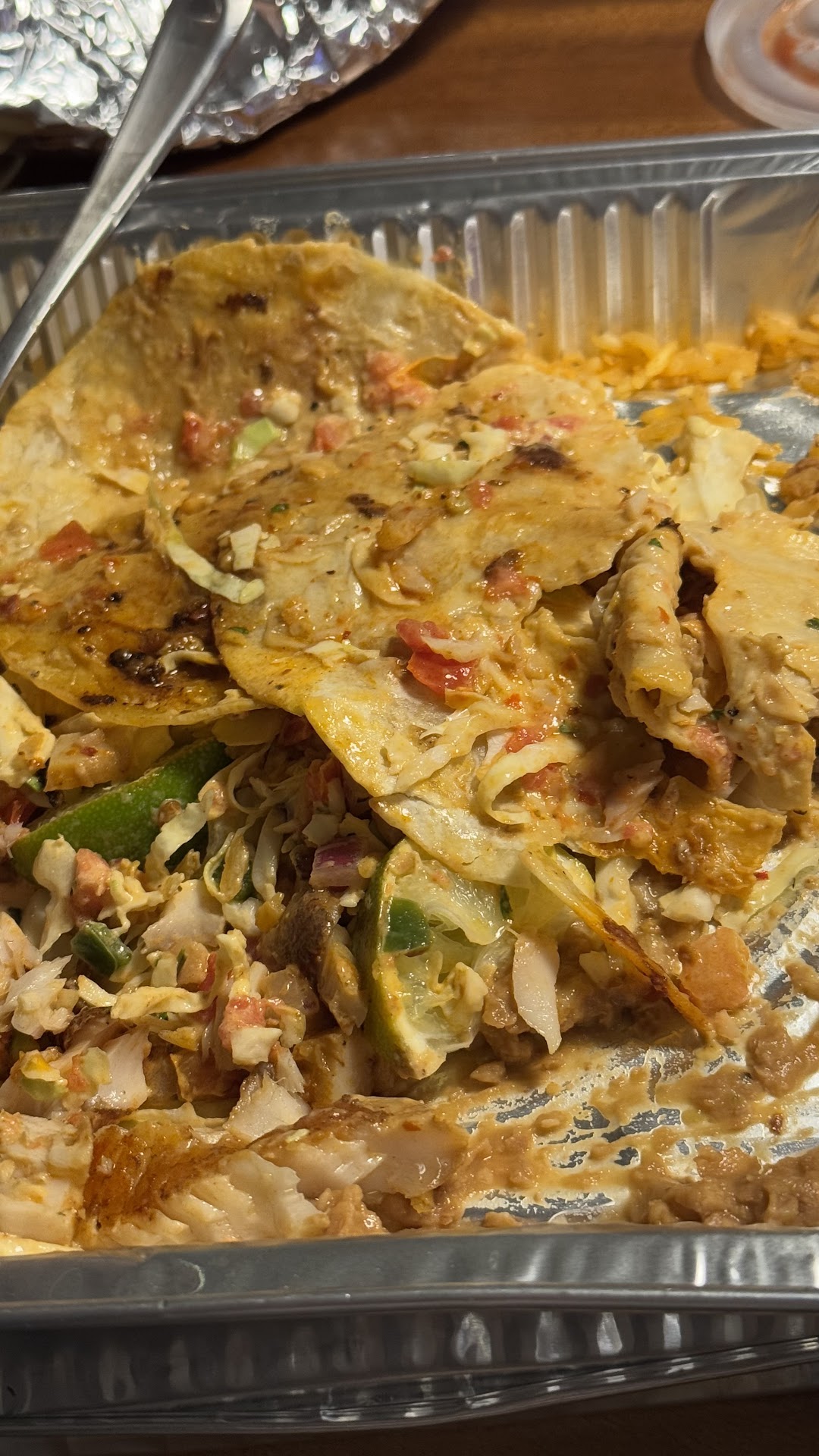 Read moreMan, I was SO disappointed with this meal. Based on the reviews I was expecting authentic TexMex food but what we got was bland, under seasoned, poor quality food. I was psyched for the salsa because it’s so hyped in all the other reviews but was absolutely baffled by what we got…it was almost like marinara sauce with raw onions and cilantro chopped up in it? Even if that’s a regional thing unique to Arizona, it was…not good. The chips were stale. I got the carne asada taco and the carnitas taco and both meats were dry, stringy, and tough. The only saving grace was the tortilla (authentic and tasty) and the lime slice (which gave some flavor). My husband got the Fiesta Burrito with chicken and the whole thing was just soggy and bland. No flavor to anything, no heat, no salt, no depth, nothing. This man has relatively low standards thanks to the Army and he gave up halfway through. The chicken tasted like it had been boiled in plain water and then stuffed into the burrito with half the water. The chile relleno was the only thing that had a bit of flavor by virtue of the pepper itself, but the batter was so soggy and flavorless it felt like eating a diaper. Totally put off. Perhaps the most disappointing was the Cheese Crispy or whatever it was called, the tortilla with cheese on it. Several reviews on here praised the “perfect balance between the cheese and the green chili sauce” or whatever but there was nothing more than a deep fried greasy tortilla topped with a melted shredded cheese medley in my box. I’m actually embarrassed that I paid $10 for that, I feel like such a fool. Ultimately I’m totally baffled by all these 5 star reviews; either these customers are heavily influenced by the service (which we didn’t have because I got takeout) or none of them have ever eaten authentic decent TexMex food, because this was just an embarrassment and I’m annoyed I spent so much money here; I would’ve been more satisfied going to Taco Bell, honestly. I hate saying that because this is a small business and I get that, but like…this food is not...