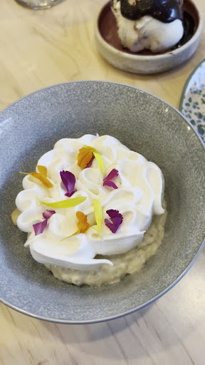 The design? Clean, warm, and airy. Using a light color palette, with floral and natural elements throughout. After getting our appetizers and drinks, my wife said “the chef has to be a woman.” And my friend said yes - she is! Rochelle Daniel. A James Beard semi-finalist for Emerging Chef. The overall plating, design, and space was feminine - with a touch of whimsy we all loved. It was nice to see an unapologetically feminine approach.