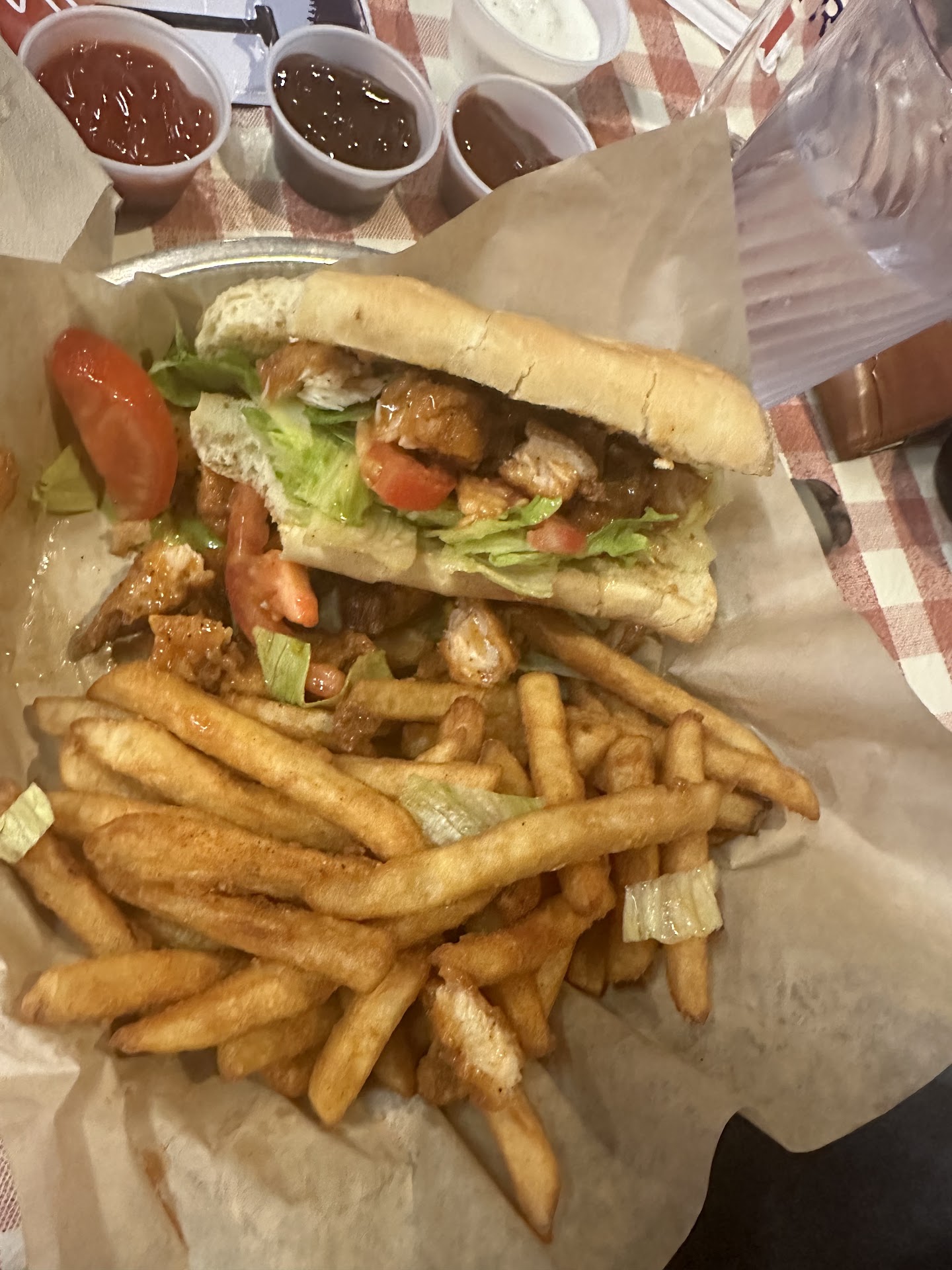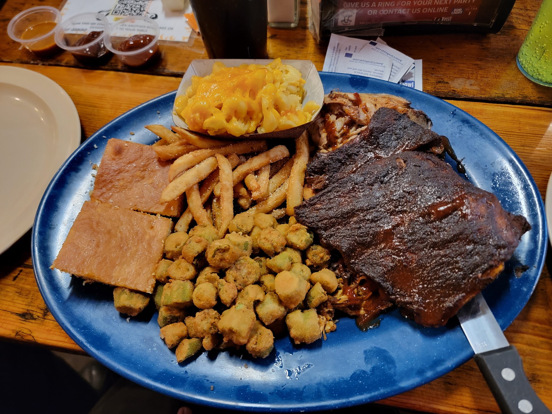Read moreWe had originally planned on a different restaurant but couldn’t find any parking near it so we changed plans and came here! We did have a lot of trouble finding it as it’s downstairs at the old town shops and there’s no signs. I got a two meat plate with pulled pork and ribs,both were amazing! I unfortunately couldn’t eat the coleslaw as it had jalapeños in it and I don’t handle spice well. But the beans and mashed sweet potatoes were amazing! I started with the potato salad but it was spicy to me as well,so they graciously let me switch it for the mashed sweet potatoes,I highly recommended them! My fiancé got the buffalo chicken sandwich and loved it! He said it was perfect but it wasn’t as spicy as he would have liked but he has a really really high spice tolerance. He got fries which were cooked perfectly. I got a prickly pear margarita with a salt rim and it was perfect,the salt was perfect with the sweet drink. I also really enjoyed their sweet tea,it was the perfect amount of sweetness and tea. You could taste both which I love. We visited on 10/19/24 at around 8 pm and everyone working that night was absolutely amazing! And...