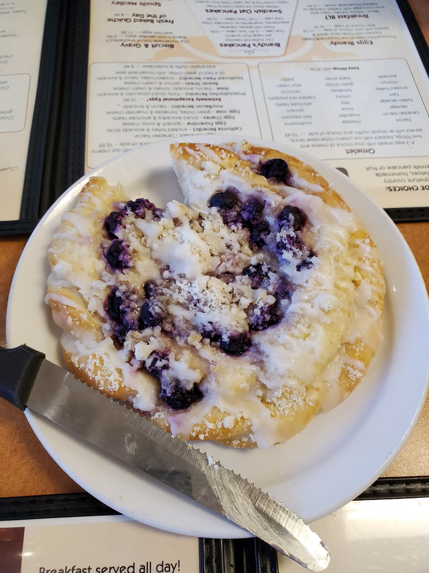 The server forgot to bring the danish, but she was polite and otherwise did her job well. In a context where there were multiple four-person tables open for the remainder of time there, and numerous parties of two people were seated in them after we had been refused one; the same employee from before walked up to our table (unprompted) and randomly pointed to a table and blamed the hostess in a bizarre fashion, without referencing any context or offering an apology for his embarrassing capacity for discernment.
