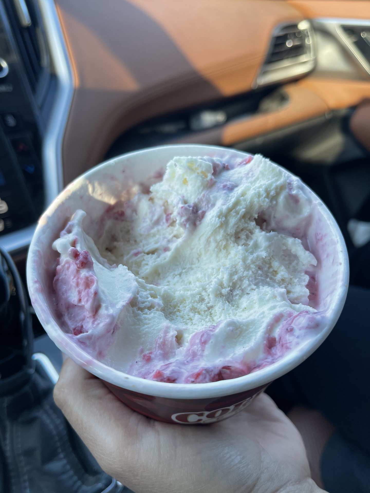 I grabbed the cup and took a small bite. Went in for another scoop with my spoon and a medium length blonde hair came out of the ice cream!!!!!