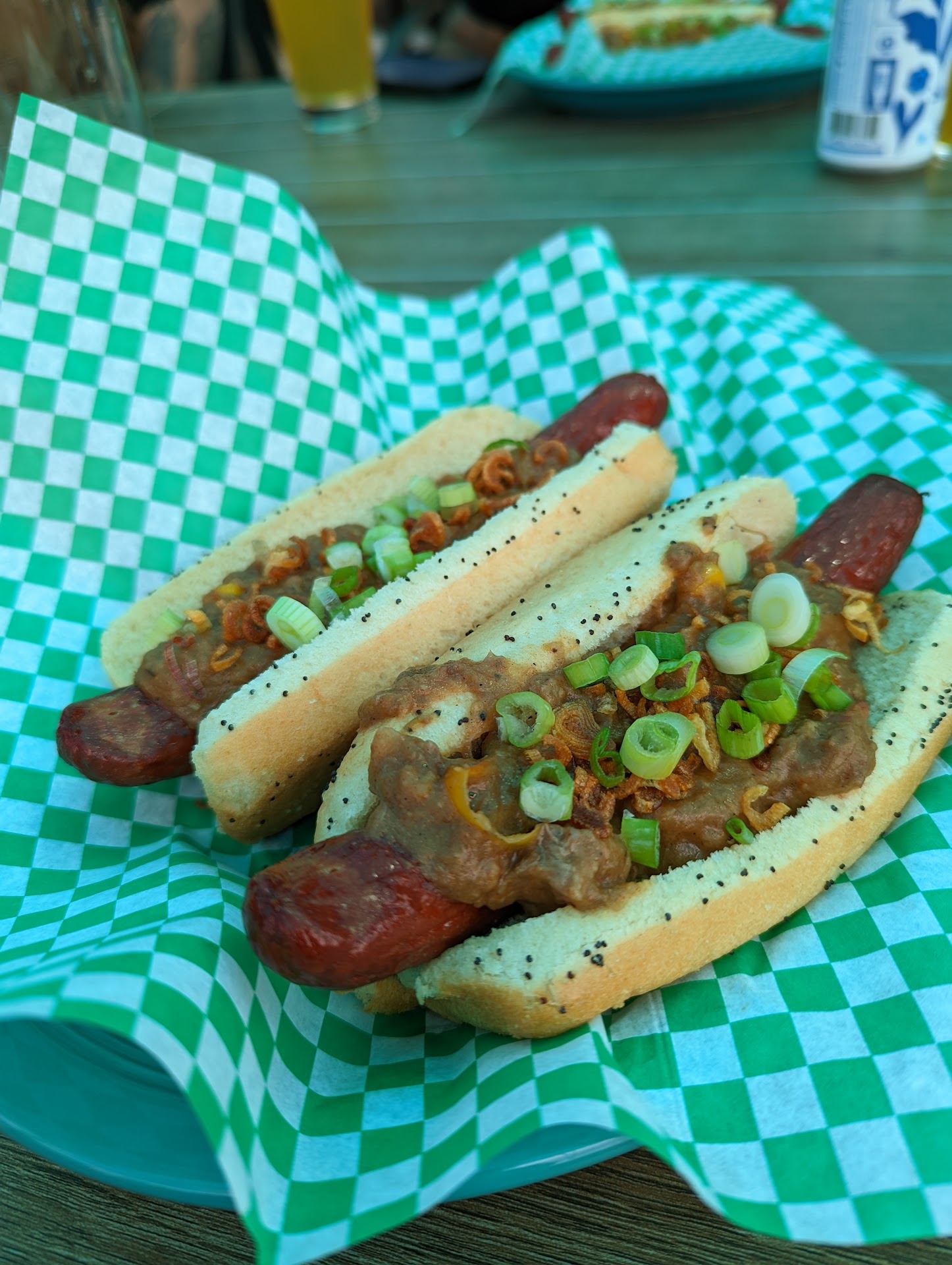 The food was actually some of the best brewery food we've had. I got the fish and chips from their Monday Bingo, and it was very good. Our friend loved their Chopped Cheese Burgers but didn't realize it came with a salad instead of fries, which they should ask at the register which one you'd prefer. It is not listed on the menu what side you'll get. My wife liked the hotdogs, but they were probably the most expensive we've ordered.