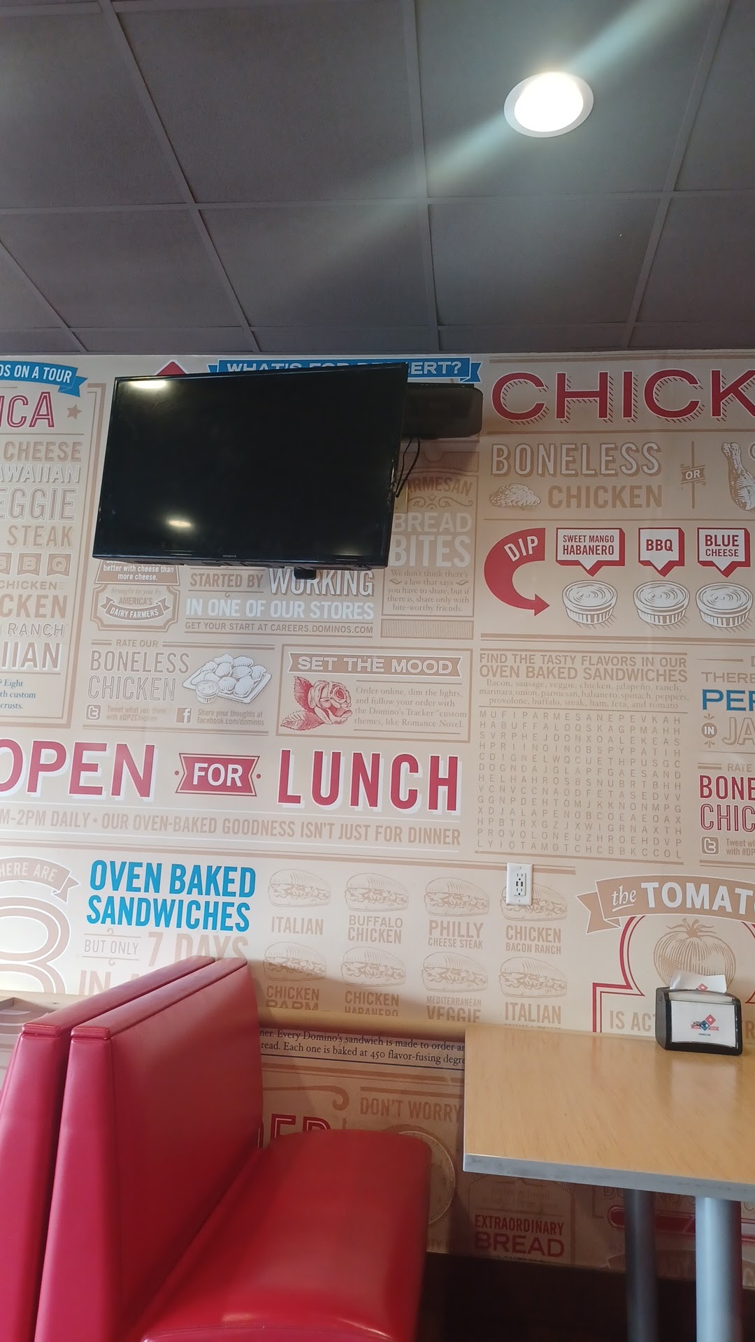 Read moreI'm not sure what reality tunnel I've stumbled across in my travels through dimensions. This town at this time exists in a reality where green olives never made it onto the menu of ANY pizza place in Flagstaff. How odd. This now means I cannot continue my travels until I get the required fuel. One extra large pineapple, banana pepper, and green olive pizza. But the pizza gods smile on me...they know my works and approve. The acceptance and addition of green olives to the menu of these misguided pizza restaurants must come to pass... Domino's heard the call. They alone stood with me! And even though they haven't added the precious item to the menu permanently the managers and I have come to an arrangement. If I supply the green olives they will apply them to my saucy fuel disk! When the moment came and I handed the sweet girl behind the counter my hastily purchased jar of green olives the clouds above the city parted...a ray...NO! A MF BEAM of golden sun cast itself upon that Domino's on 7th street. And I knew my travels were complete and my works were good. That was 177 years ago to the day...and while not one single pizza place in town has even heard of green olives my little secret with the managers of the 7th street Domino's has never waned. Nor has my love and respect... That being said the crust is a little...