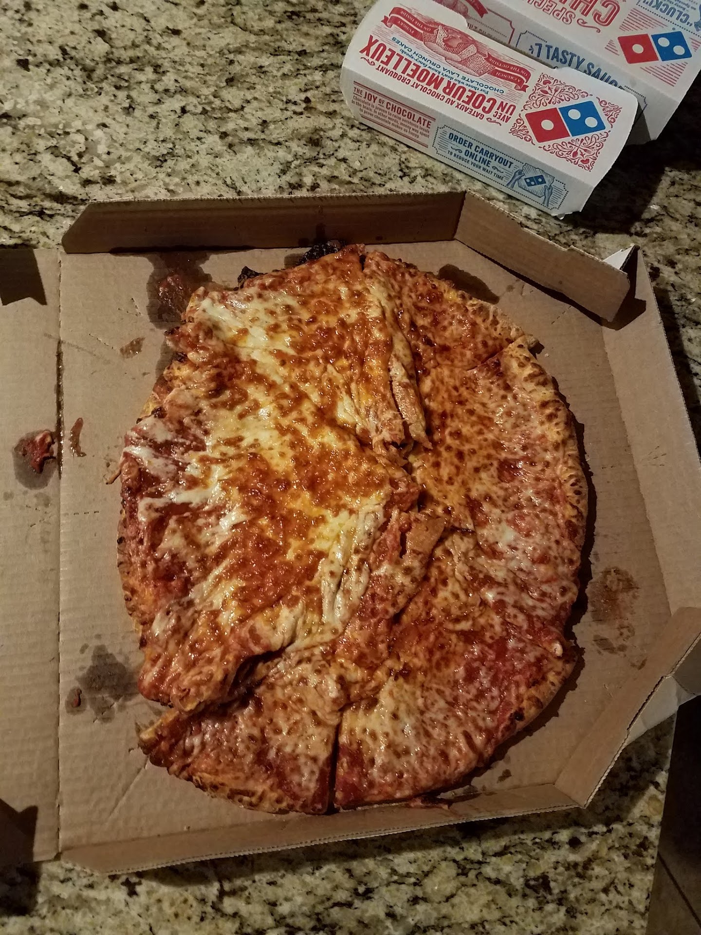 -- January 28, 2011. Order # 170226. The chicken wings were burnt to a crisp. Actually had a charred, black film covering all of them. They sent out new wings but by then everyone was done eating. -- February 2nd, 2011. Order # 170968. I ordered a thin crust pizza and couldn't eat it because they put so much seasoning on it. It looked like someone unscrewed the top of the seasoning shaker as a joke and just poured it in a circle. I called the manager to have a district manager or the owner to contact me via cell or email. I wanted to let them know something was wrong with my favorite place to get pizza. Well as of 2/21/11, no such contact. -- February 20, 2011. Order # 173487. I ordered 3 pizzas and some sides. The order took 55 mins (was told 29-39 mins). It was cold, and worst of all, both Garlic Dipping Cups I paid for (Papa John's Pizza gives you free) were busted in the bag soaking the napkins and everything else.