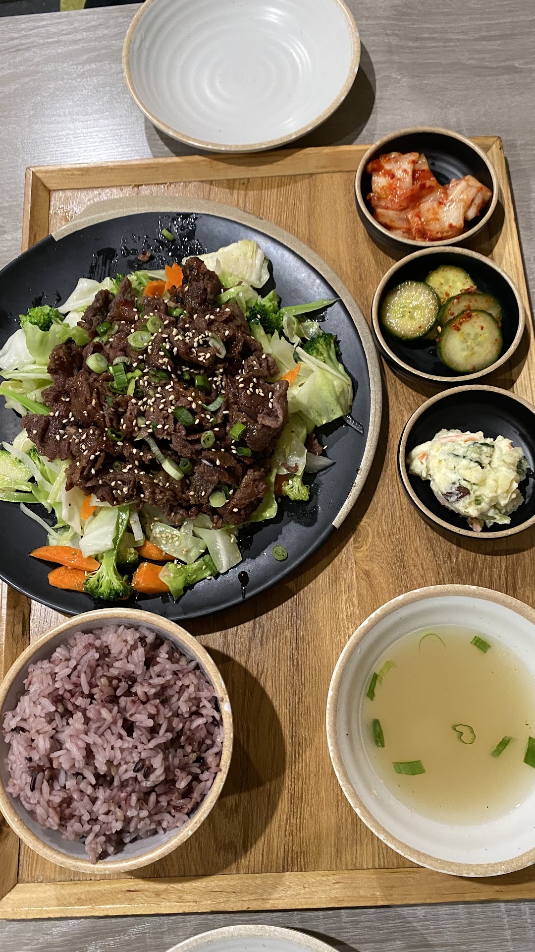 Ā Ā Ā Read moreWe had dinner here tonight. I really, really wanted to love this place. The food was surprisingly good. The bulgogi was a bit on the dry side but flavourful and the included veggies were a nice touch. The japchae was delicious. However, our server was incredibly, incredibly rude. We showed up early for our 7:15pm reservation and were seated promptly which was nice. The server asked us twice (impatiently) if we were ready to order. The food came, and around 7:35pm we were asked if we wanted anything else. We asked to take a look at the menu. The server huffed and puffed while grabbing the menu and snapped one word responses to our comments and questions. We were so uncomfortable, we ordered our last entree to goā¦and the server sighed, took the menu and more or less slammed it on the front counter on his way to let the kitchen know. We were out of the restaurant well before the 8pm closing time and were still treated rudely on the way out. My friend still tipped generously because thatās the kind of person he isā¦I personally wouldnāt have.