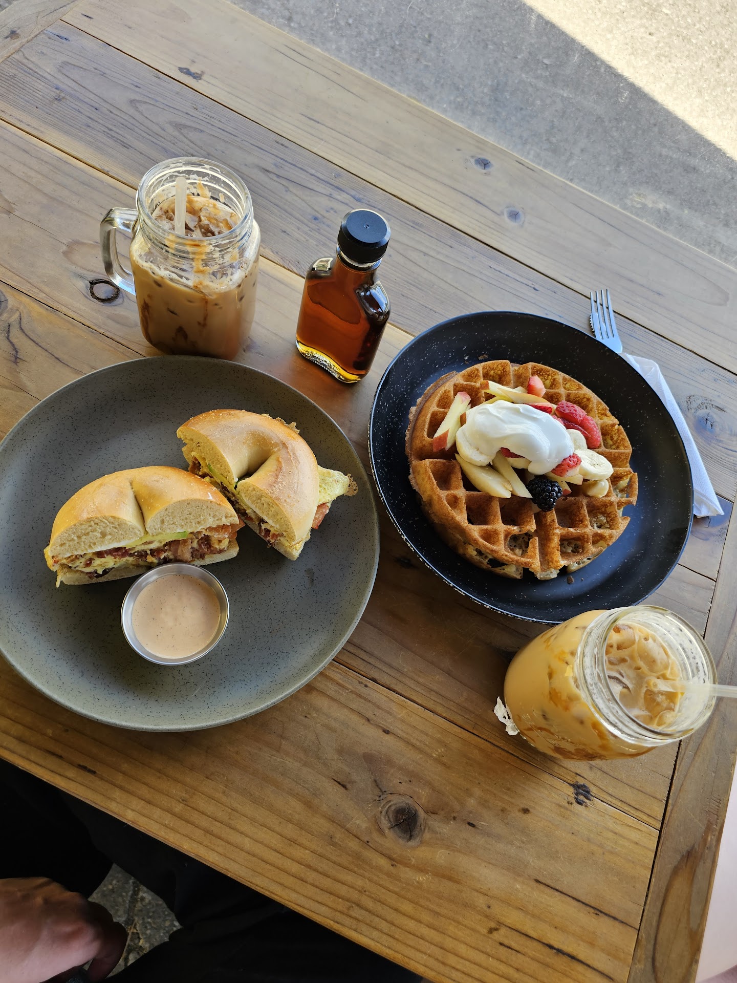 We started our meal with an iced mocha and a caramel latte, both of which were perfectly made. The coffee was rich and flavorful. For our entrees, we ordered the breakfast sandwich and the homemade waffle. The breakfast sandwich was made with fresh, high-quality ingredients, and the waffle was perfectly crispy on the outside and fluffy on the inside.