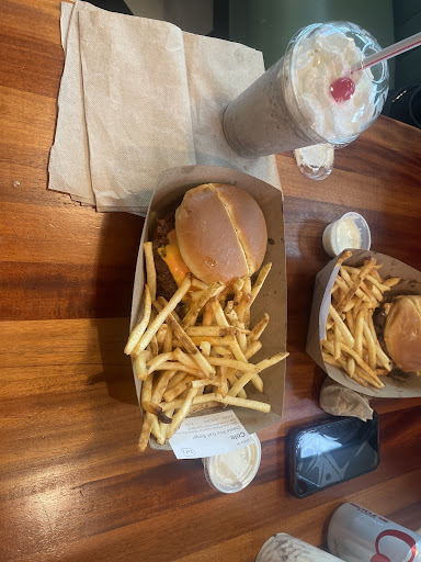 Read moreIt's a seat yourself kind of joint, which I have no issue with. You have the option of sitting outside, sitting at a table inside, or sitting at the bar inside - I chose to sit at the bar. Unfortunately the bar counter was quite sticky, but I wasn't that bothered by it. The decor was like most burger joints, 50's inspired, it was cute but not anything special. I did enjoy when I went to the restroom and found a Wonder-Woman sign on the ladies room door, and a Super-Man sign on the men's, the geek in me was quite pleased.