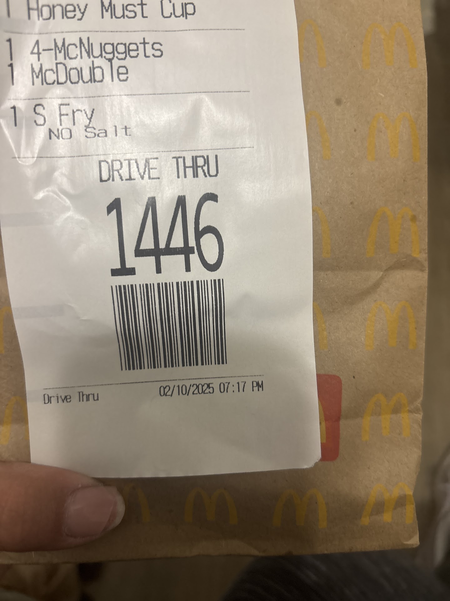Sorry if there was a minus star I would have given that period while a rolled up to the 1st window the girl took my order and I sat there at her window for at least 5 to 7 minutes and she goes yep the lights not moving so I'm gonna go get me something to eat and drink now I'm not kidding no she literally told me that .I was asked to pull up in the Drive-through parking and waited 10 minutes in the parking area because they said they were waiting for my quarter pounder with cheese. When they did bring it out to with my daughter's chicken nugget happy meal they left the fries outAlso the poor teenager Had no direction on what meals went to what cars so he was literally running around with my meal to every card asking if this was theirs I'm just glad there's some on his people common so I had to walk back in and if the guy that was inside was very sweet and gave me a medium instead of the little tiny thing that comes with the happy meal but still the reason for the drive there is the convenience not only did we wait 10 minutes me and 4 other people out there in the overflow drive-through parking but we literally or in the drive-through for at least 7 plus minutes. My food was stone cold with the exception of the fries that they gave me because I walked in and God them and they paid almost $16 for 2 meals are you serious man make dawn was your share ripping people off I was certainly...