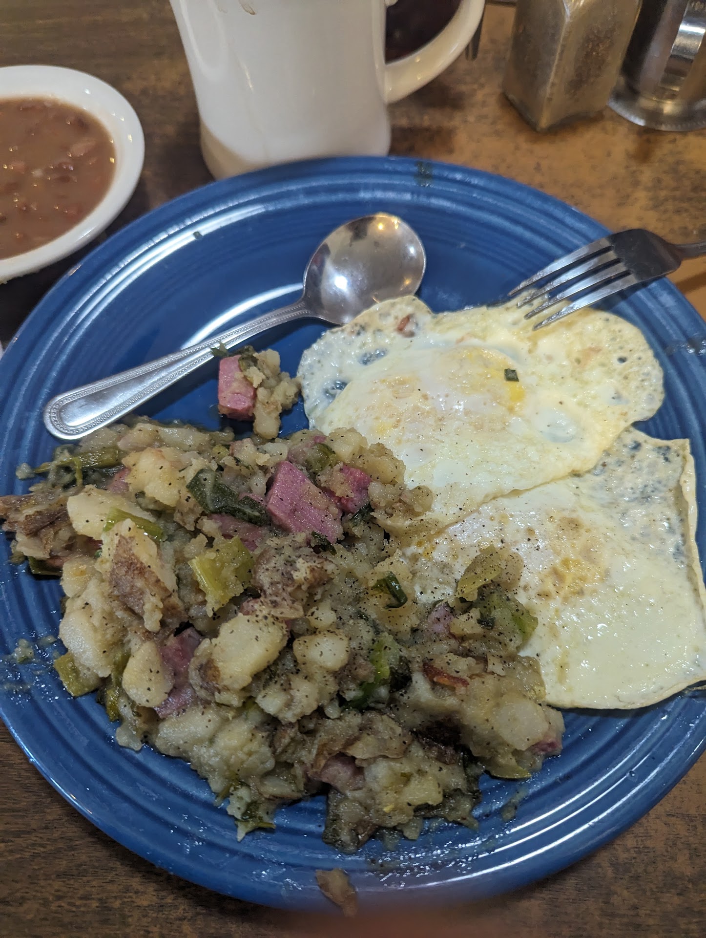 Read moreService was awesome. I ordered eggs scrambled lightly, extra brown hash browns, and biscuits and gravy. The eggs were "extra" cooked, overcooked by anyone's standards. The hash browns were more like hash whites (see picture). The gravy was cold...and when it came back hot, it had a very strong metallic taste. It was pretty much a disaster. I wanted to get the chicken fried steak but they said they didn’t have any yet, which seemed odd for a breakfast restaurant with it listed on the menu. They said that no one could cut the steak until later in the day. I can say that everything was clean and the waitress had an attitude as bright as the sun. She was lovely. But at the end of the day, you come into a restaurant for the food. It’s worth mentioning that a customer nearby ordered wheat bread with no butter. They got it wrong three times...no kidding. Not sure what’s up with the kitchen but the whole meal was so bad. I’ll...