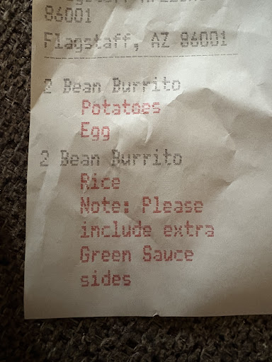 Read moreI was in Flagstaff this weekend camping with my nephew and friends. We slept in so we got a late start on Sunday. After we cleaned up camp we just wanted a quick bite to eat, some coffee, and fuel up before heading home. If I’m up early I usually hit up MartAnne’s, Biff’s or one of the other many great breakfast places in Flagstaff. But as anybody who visits Flagstaff knows, you better arrive to breakfast early or prepare to wait in line. We didn’t feel like participating in the waiting game, and decided to grab a quick breakfast burrito and head home. I was going to go to Tacos Los Altos, but the drive thru line was extremely long. Right next door to Tacos Los Altos was this place. There were only two cars in line at the drive thru so I got in line. I quickly found out why the short line. It took 15 minutes just to get to the drive thru order speaker. And when I got there it took another 5 minutes for someone to acknowledge I was there and take my order. All I ordered was one breakfast burrito and two large drinks. It took another 20 minutes to get to the window for my food. I waited another 5 minutes again for someone to greet me, just to tell me they are out of the drink I ordered and would I like something else. The soft drink I ended up getting was flat and straight syrup. My nephew got a Piña agua fresca and it was warm. You could tell they just put it on ice. After we got our drinks we had to wait another ten minutes to get my puny little bacon breakfast burrito. In the mean time I saw more than 20 cars go through the drive thru next door at Tacos Los Altos, and that is only when we decided to start counting. How Riliberto’s is even open with quick service their competitor provides, immediately next door, is beyond me. I’d give less than 1 star if it let me....
