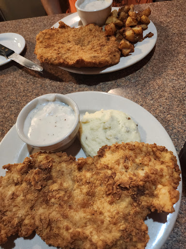 The food was, how should I put this, acceptable. My medium ribeye came out with a large amount of char all over. To cover the dryness, they pile butter on top right before they serve it. The cook was exactly medium, despite the charring indicating otherwise. My son's chicken fried steak was absolutely gigantic, however there was twice as much breading as steak which made it almost inedible. All the meals at our table followed that pattern, almost good but just not. I'd be interested to see if their medium rare comes out better than their medium and will make another trip to determine if it was just a bad night.