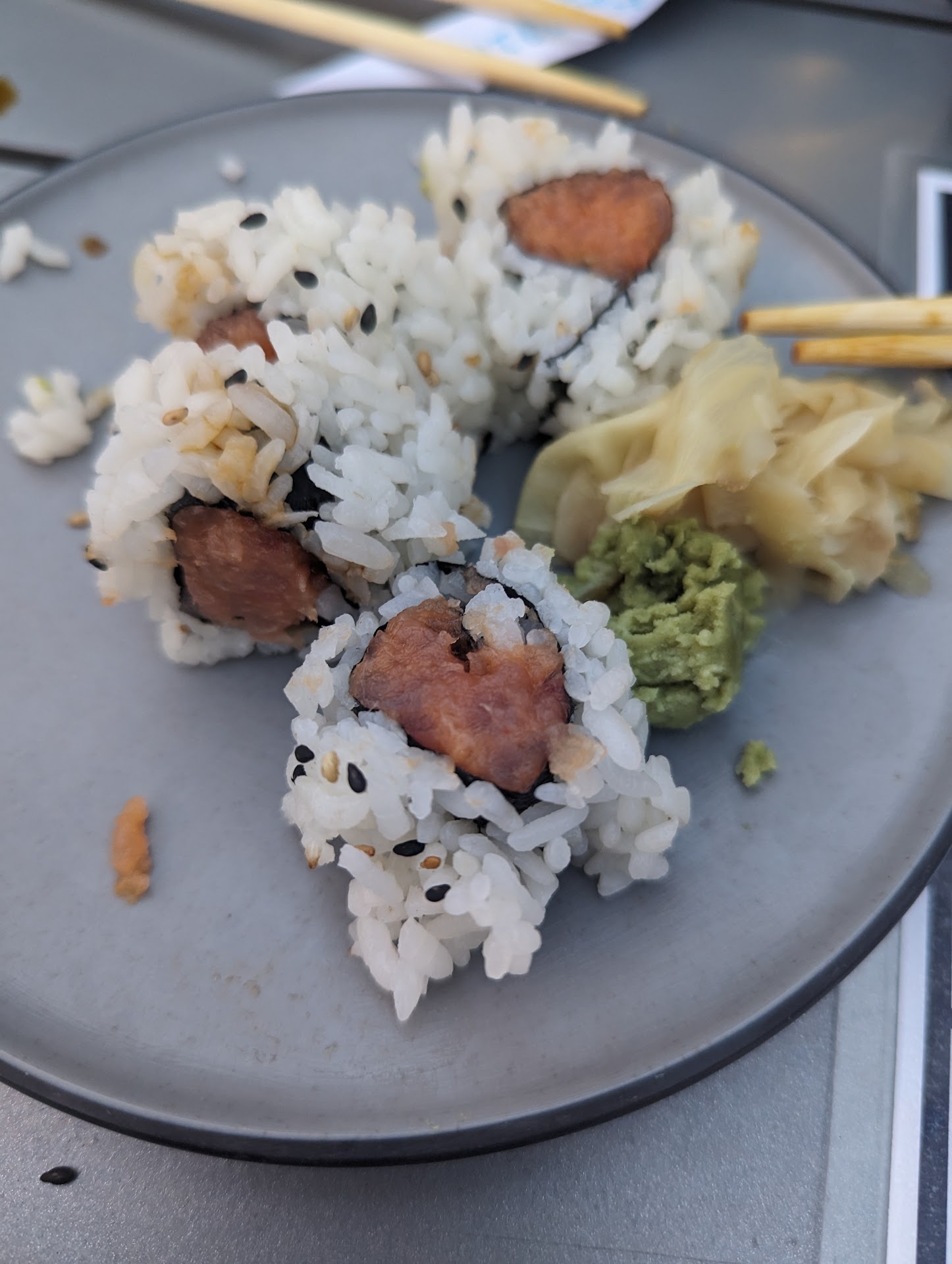 Have been awaiting their opening for some time now as it's roughly in my neighborhood and there are few places like this that aren't a stale corporate chain in this general area, so when we heard they'd soft opened we made lunch plans on their second day open. Initial thoughts walking in- very nicely put together, bright and inviting space with nicely varied seating opportunities (large bar area, sushi bar, and standard seats/booths). There are screens everywhere and while it can feel like an assualt on the senses for a date night type dinner it's perfect for a sports bar vibe, which is as promised- seems like not a bad seat in the house if your aim is to catch the game du jour. Server was warm and welcoming, although they seemed a bit overstaffed for a soft launch. Considering the logistics of opening a new spot like this I'd much prefer overstaffed to understaffed though. Speaking of logistics, they hadn't yet received their liquor license and were instantly upfront about it- not a problem, there's little they can do and while a beer would have been nice (and their taplist looks fantastic) I realize the regulatory hoops can be tricky to navigate. Food: we had a large party, and tried a little bit of everything. I had the tuna tacos, which were crispy and fresh tasting, although I contend (and it's a matter of preference) that they could have used a tad more spice. Also shared some standard rolls (spicy tuna, eel, and one with tempura shrimp), all of which were well executed and tasty- will certainly try some specialty rolls next time as there are some interesting options. Others in our party had a chicken tender sandwich (which they reported as being very good- and it was pretty massive to boot) and a sesame chicken salad, which was also reportedly quite good. We did attempt to order some fried tofu but were informed they didn't have it in stock, so hopefully can give that a crack on our next visit. Pricing here seems pretty fair and consistent with the current market, although there were a small handful of items that seem to be a little higher than I'd expect. One thing I think I might add to the menu are a few more lower-end appetizer baskets (the kind of fried goodies that folks can munch on at the bar during a game)- I felt like most of the selections were a little to sophisticated for your average sports-bar goer. Other recommendation I'd make on the food side- offer a veggie burger substitute option- I noticed there weren't a ton of offerings for vegetarians but this area is known to have more than its fair share of plant eaters, and while there might have been a veggie burger option I didn't see it listed. It's an easy thing to keep in the freezer the opens up a ton of substitution options for folks that don't do meat. Service was friendly, fast, and informative- our waitress was attentive throughout and the GM visited our table to check in and inform us of future plans- great way to make a first impression. Overall- we'll definitely be back- as mentioned it's in our neighborhood and there are few places like this in the immediate area. In a sea of Applebee's and Chili's it's nice to have somewhere local to patronize and even better that they show so much promise...
