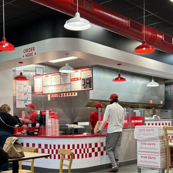 You know the first time I walked into a five guys establishment, I was very impressed with not only the food , but of very concept of witch they had based their business plan on. Great food , great name , open grill area for viewing of freshness being prepared in your presence, Now , where they lost me was , there over preporationend sizes , accompanied with a inflatable price tag , I have no problem affording to eat here , as I am very established financially. But as the food is good , I cant justify spending 40.00 + dollars for a meal for two , knowing that I can spend less at a very nice steak house having wait staff serve me at my table very carefully, bringing me fresh rolls from the oven to get started vs peanuts, and that my guest and I will choose from a diverse menu, choosing not only a delicious steak , or what have you. And a couple sides of my choosing. And drinks , and will arrive at the same amount, having eaten a much better meal, more nutritious, more choices, better atmosphere. My thoughts of five guys linger . I still like all the before mentioned complements I gave at the beginning of this post , and I do believe it's a good business model, but, I also believe that to keep this a great place to eat now and then , there needs to be a reduction in there price point. I know that they are known for their larger portions. So if they want to keep this there draw , then I suggest lowering prices a bit not to chase off people who cant justify price , or reduce portions and price to reflect this . As well as a marketing campaign to support this action. I am not in marketing, although I sure I would be great at it , I would think with an add campaign presenting there intention for reduced pricing, this would generate a increased amount of return customers as well as a higher amount of word of mouth new customers clamoring to get this bigger better deal that they heard about at 5 guys. Ok...