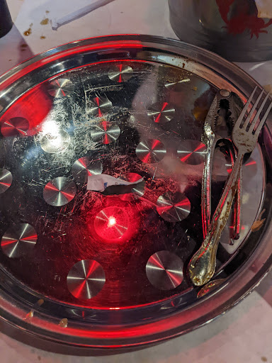 Tables lined with paper for easy cleanup. Hand sanitizer provided upon sit down. Paper towels on the table for use (I like this). Wet wipes in addition at the end of meal.