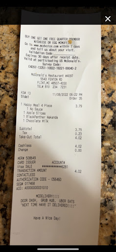 Additionally, his mother and I received food as part of the order. Knowing that McDonald's is the culprit, and we, too, could have food poisoning, it was a waiting process to see what would happen.