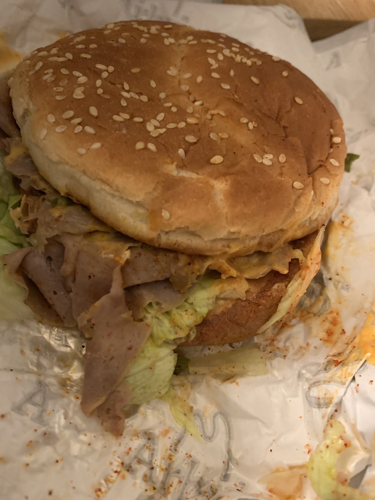 Then my friend is eating her cold sandwich and all of a sudden she goes "omg, I'm going to throw up!!" A GIANT HAIR INNERTWINED INTO HER SANDWICH. She knew i was already planning to write a review so she had me take a pic. Meanwhile, we were both gagging. I have a pic & video actually of the hair breaking multiple times before we could finally get it out of the sandwich.