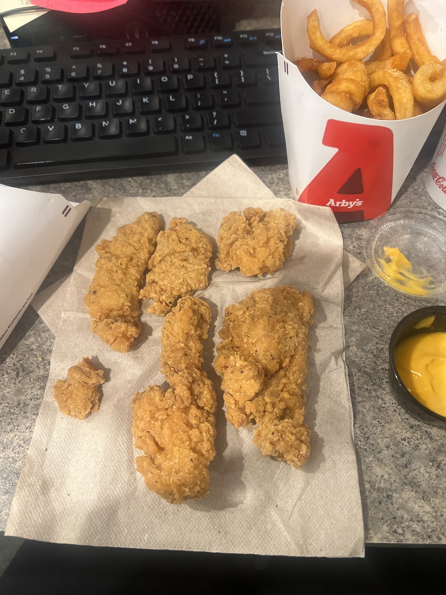 Read moreWent here today for lunch it seems as if the person working drive thru thought I wanted 2 nuggets thrown In to make it a 5 piece tender as if the tenders looked any better, fries tasted like oil needed changing and when she gave me a new lid she only had her unwashed hands on the inside of the lid after she wasted most of my drink on me because she did not put the top on good and of course Im not drinking that. She then looks at me and says you need another top or sumthin? I said I could use one, like duh Tf. No sorry, my bad or nothing gave me napkins and shut the window.🤦🏽♀️🤷🏽♀️This...