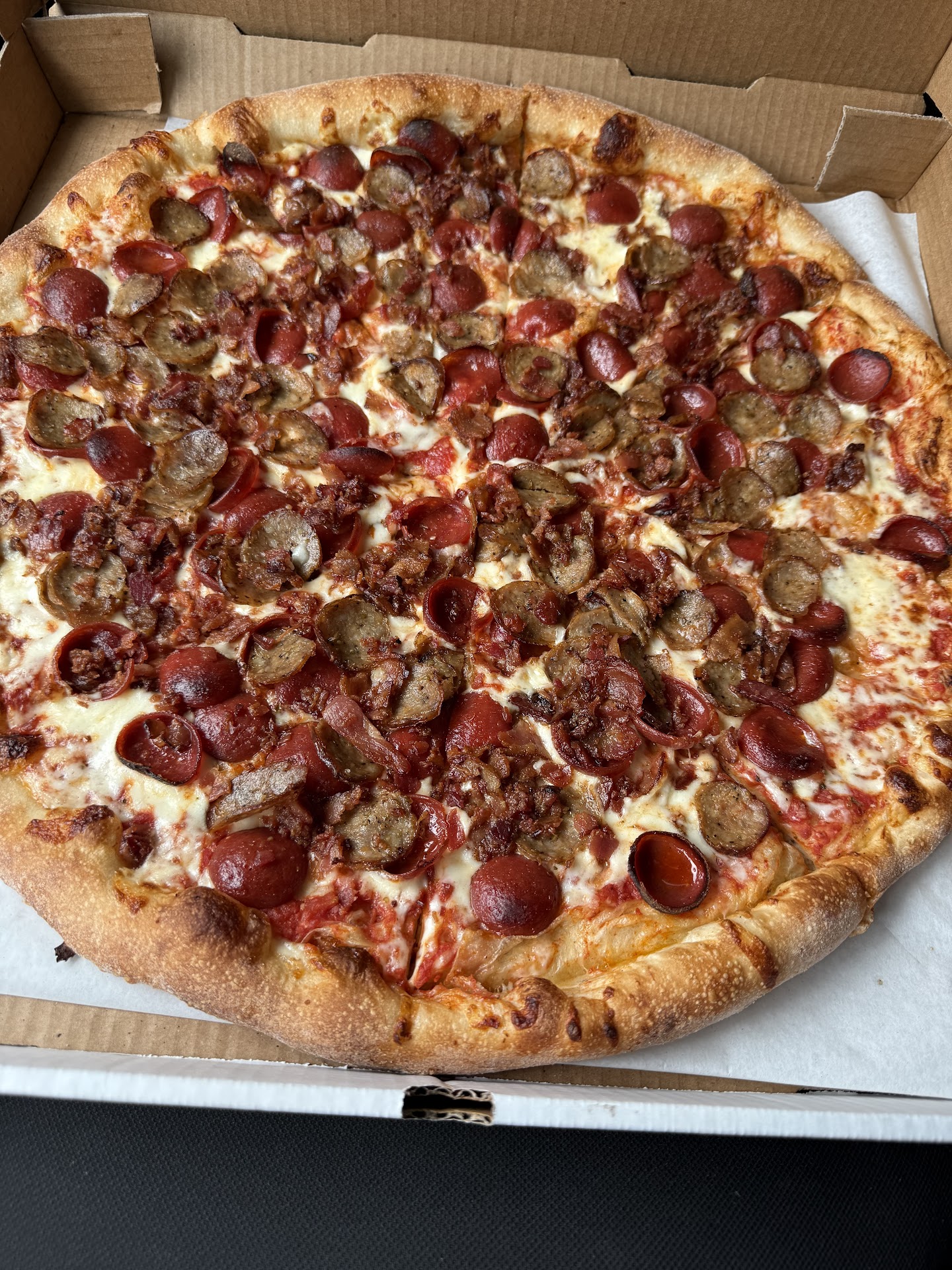 Read moreI had HIGH hopes for this place. 22$ for a large ham and bacon. So not terrible prices. I eat pizza 2-3 times a week. And have had probably every pizza in Genesee county. This pizza had good flavor , bacon was good and not real fatty. I asked for light sauce. Sauce was light . But very flavorful. There was not a lot Of cheese. Which was disappointing, The crust was absolutely over cooked. Zero flavor on the crust. It literally tasted like burnt cardboard. And even if it did have a little flavor. It was not edible as it was just to crunchy/burnt. I will try it again. But will have to be by my self. My wife says it’s one of the worst pizzas she has ate. I will try the bbq chicken next time. And hopefully update this review. ...
